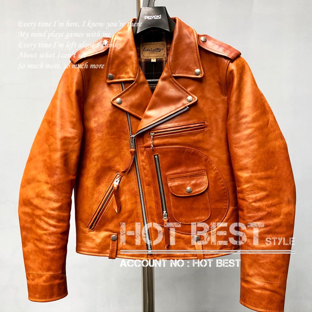 レア色 ホースハイド 50's J-24タイプ ダブルライダース レザージャケット オイルワックスレザー 馬革【XL】HBY687