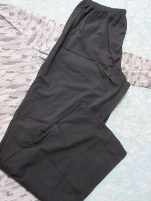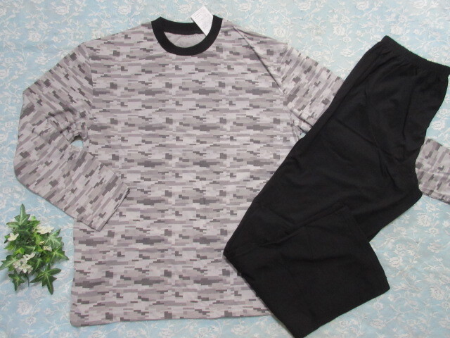 ☆新品のメンズサイズ【LL】の迷彩柄の長袖Tシャツ&長ズボン(黒、右お尻にポケットあり)パジャマです。Tシャツ素材の綿35%・ポリエステル65%です。ビニール袋入りの商品で撮影のため、開封したため、商品には襟部分に取り扱い注意の紙タグがついているのみです。圧縮梱包するため、新しいビニール袋に入れ直します。☆送料無料 ☆実寸:上着:身幅60cm、着丈74cm、ズボン:ウエスト身幅40cm、股下77cm ☆他サイトとの併用出品のため、御手数ですが、ご購入前にご質問欄よりコメントを入れて下さい。 | |||
