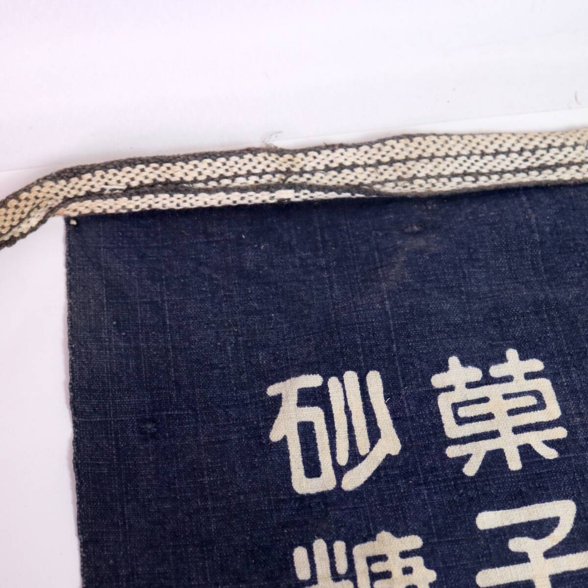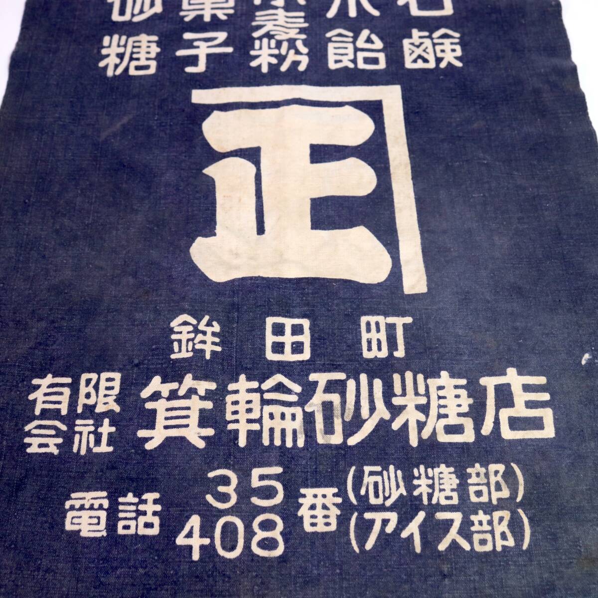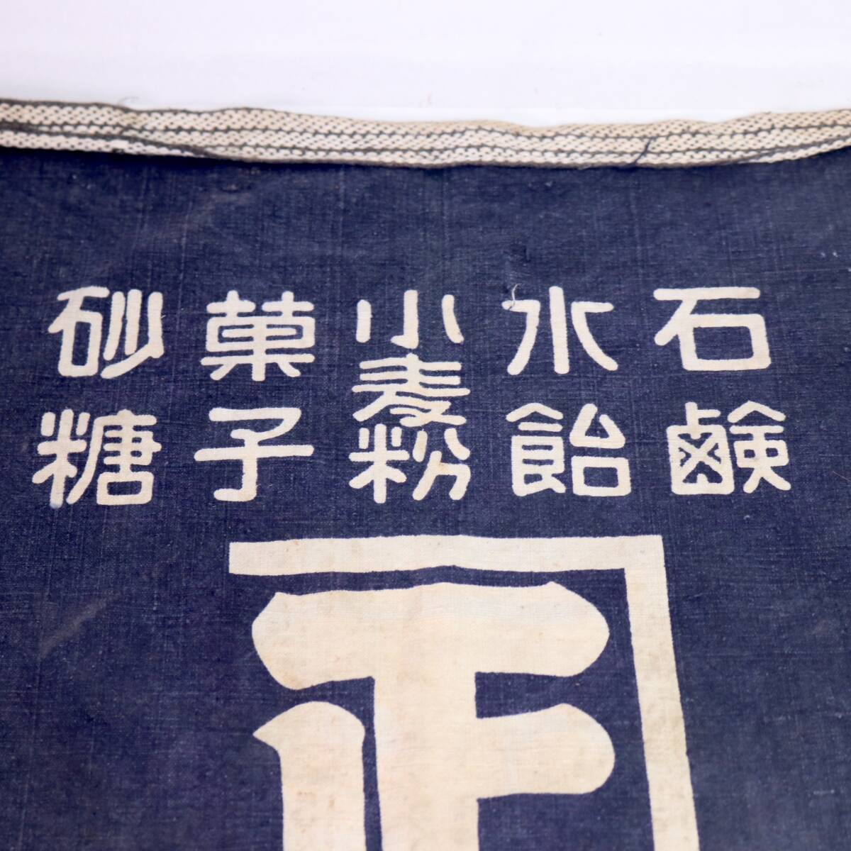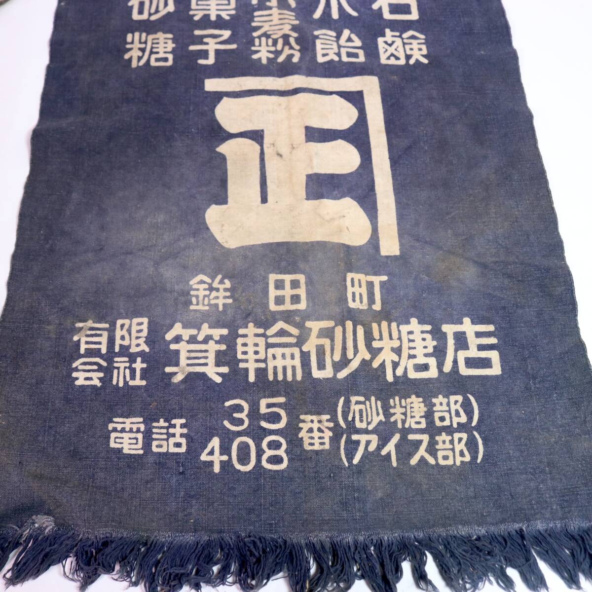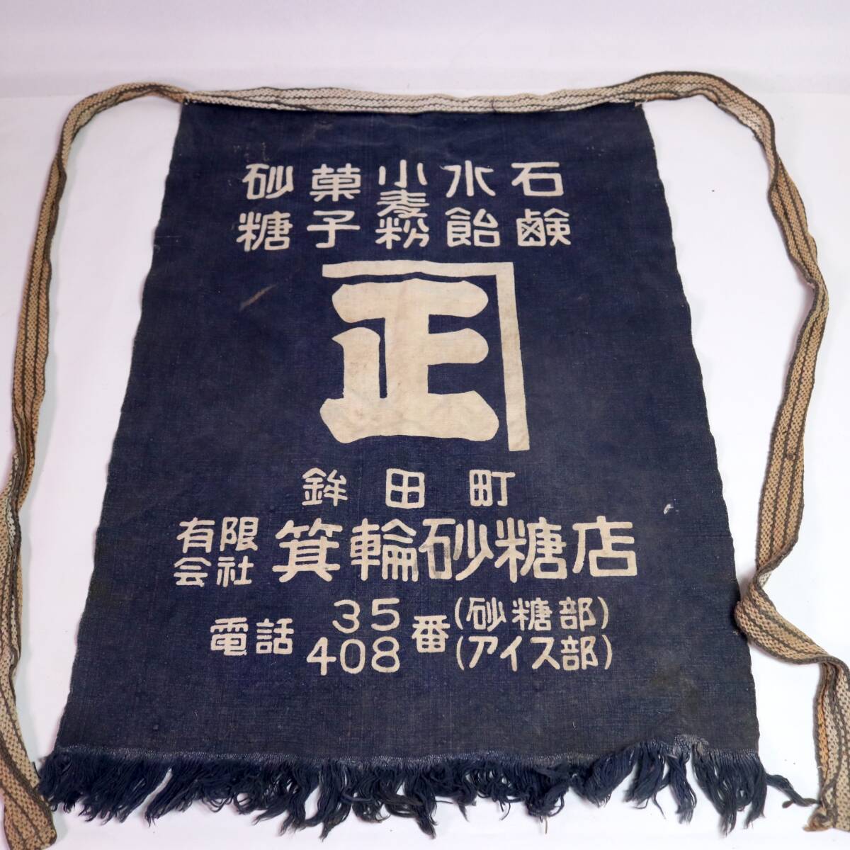 C1042 昭和レトロ 前掛け 鉾田町 箕輪砂糖店 石鹸 水飴 小麦粉 菓子 砂糖 両面プリント アンティーク ビンテージ 当時物 時代物 年代