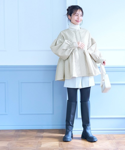 参考商品名:上品エンボスボリューム袖ティアードブルゾン