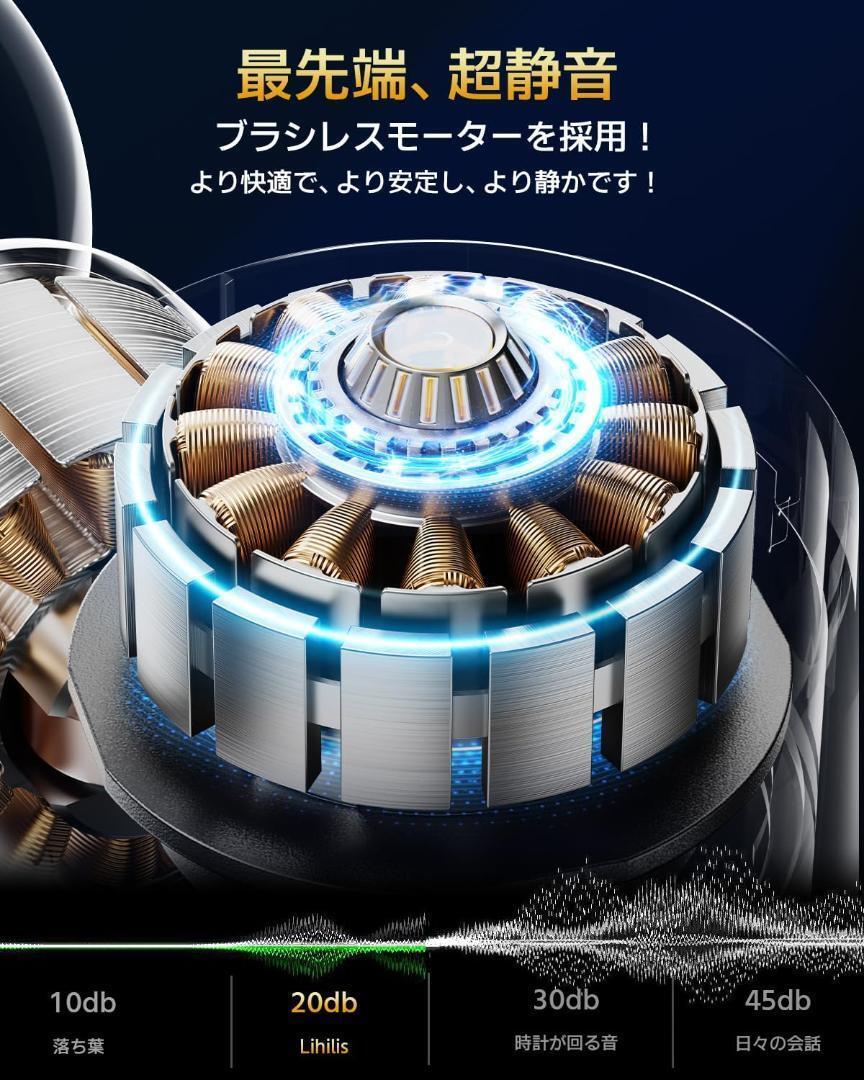 新しいエネルギー車と同じバッテリーコアを搭載しており、4000mAhの大容量バッテリーが搭載搭載し、満充電で12時間ご使用できます。安心の20db静音設計、早朝や深夜でも使え、周りの方にご迷惑をかけることなく。