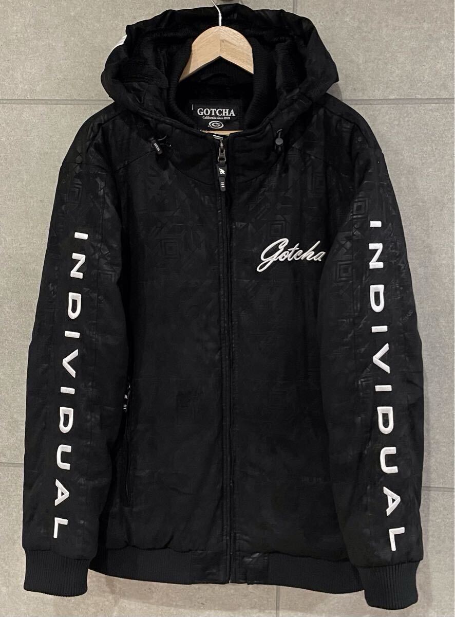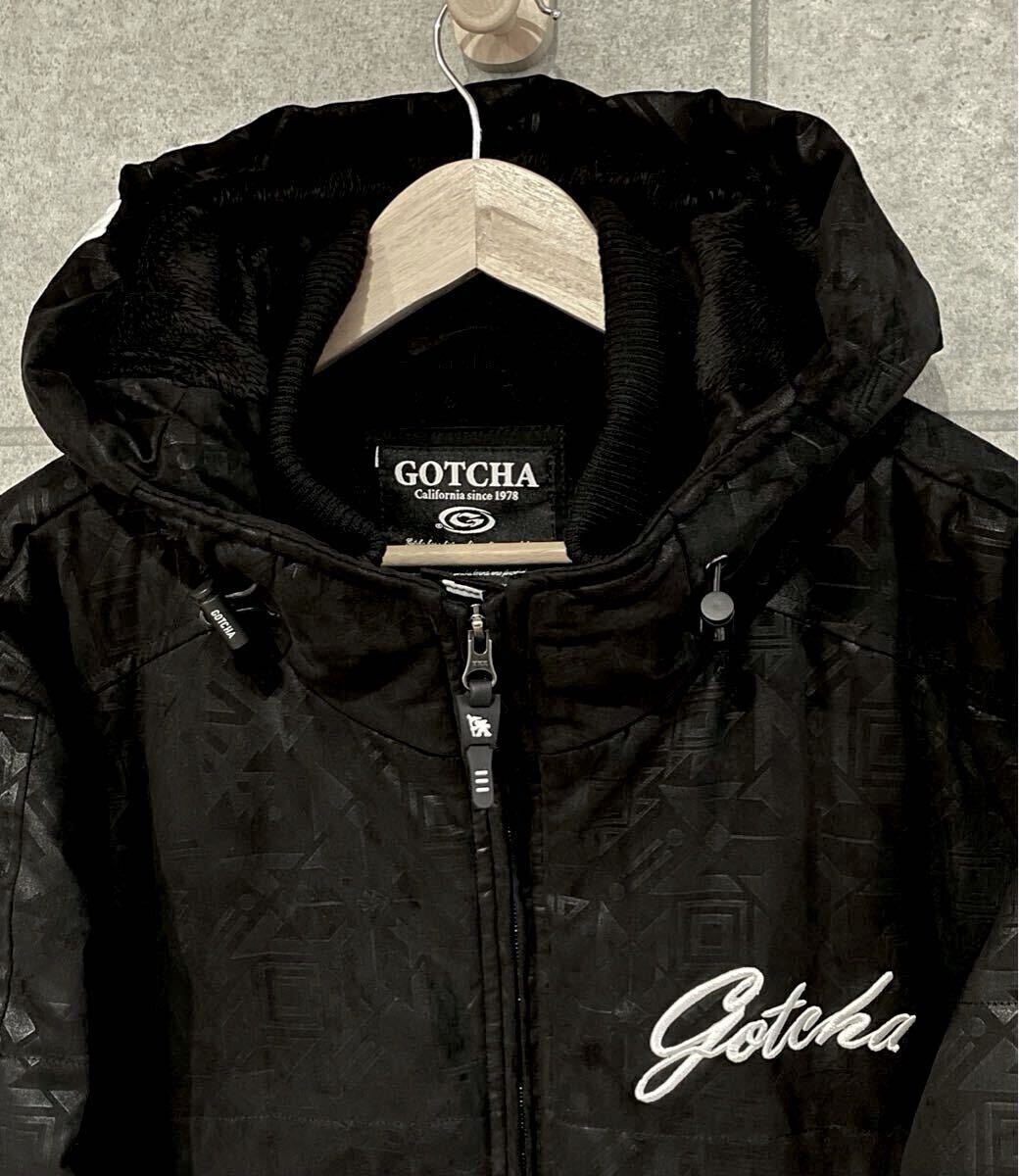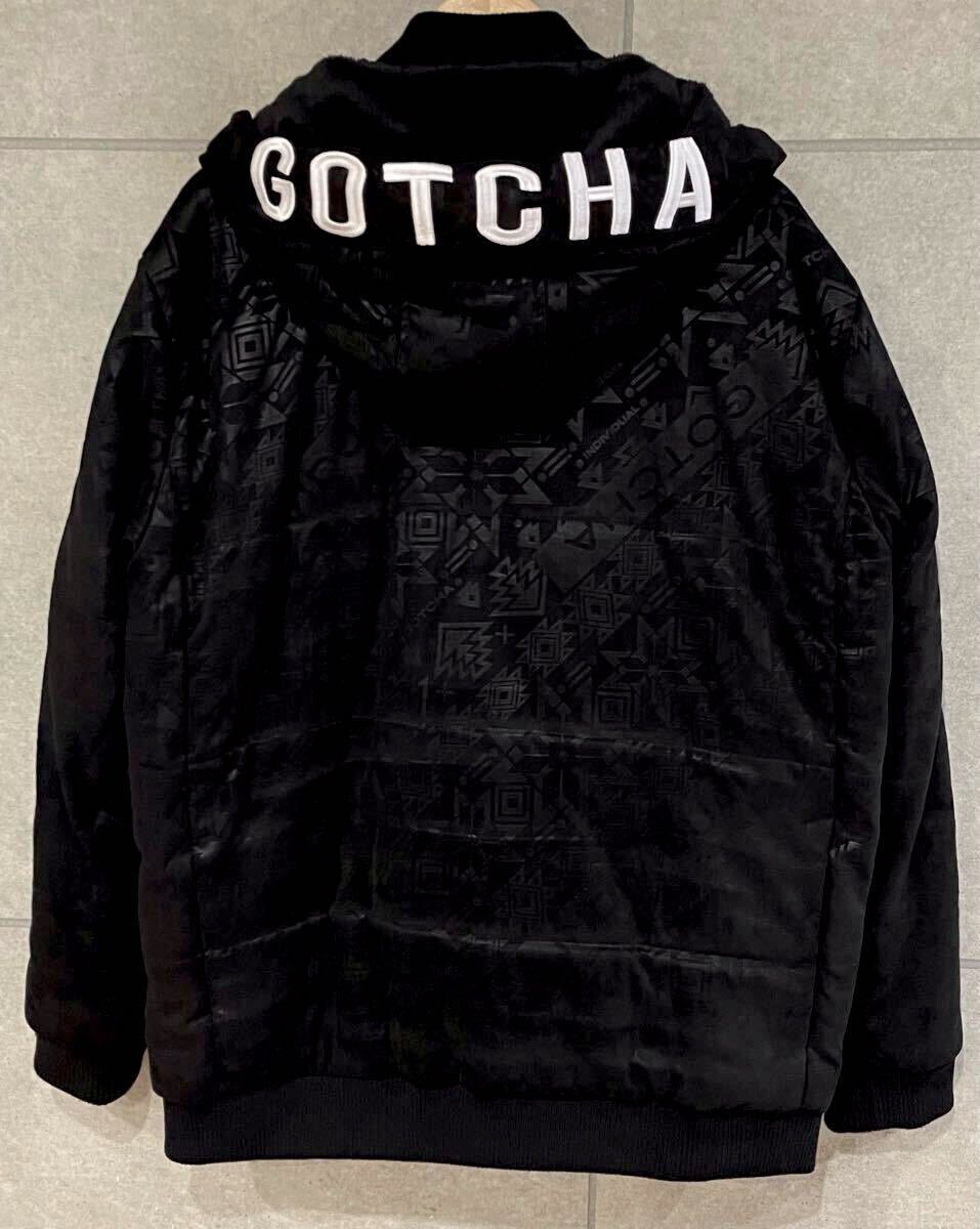 ゴルフにも! GOTCHA ガッチャ 豪華刺繍 中綿 ジップアップジャケット 裏地ファー 総柄 ブラック 黒