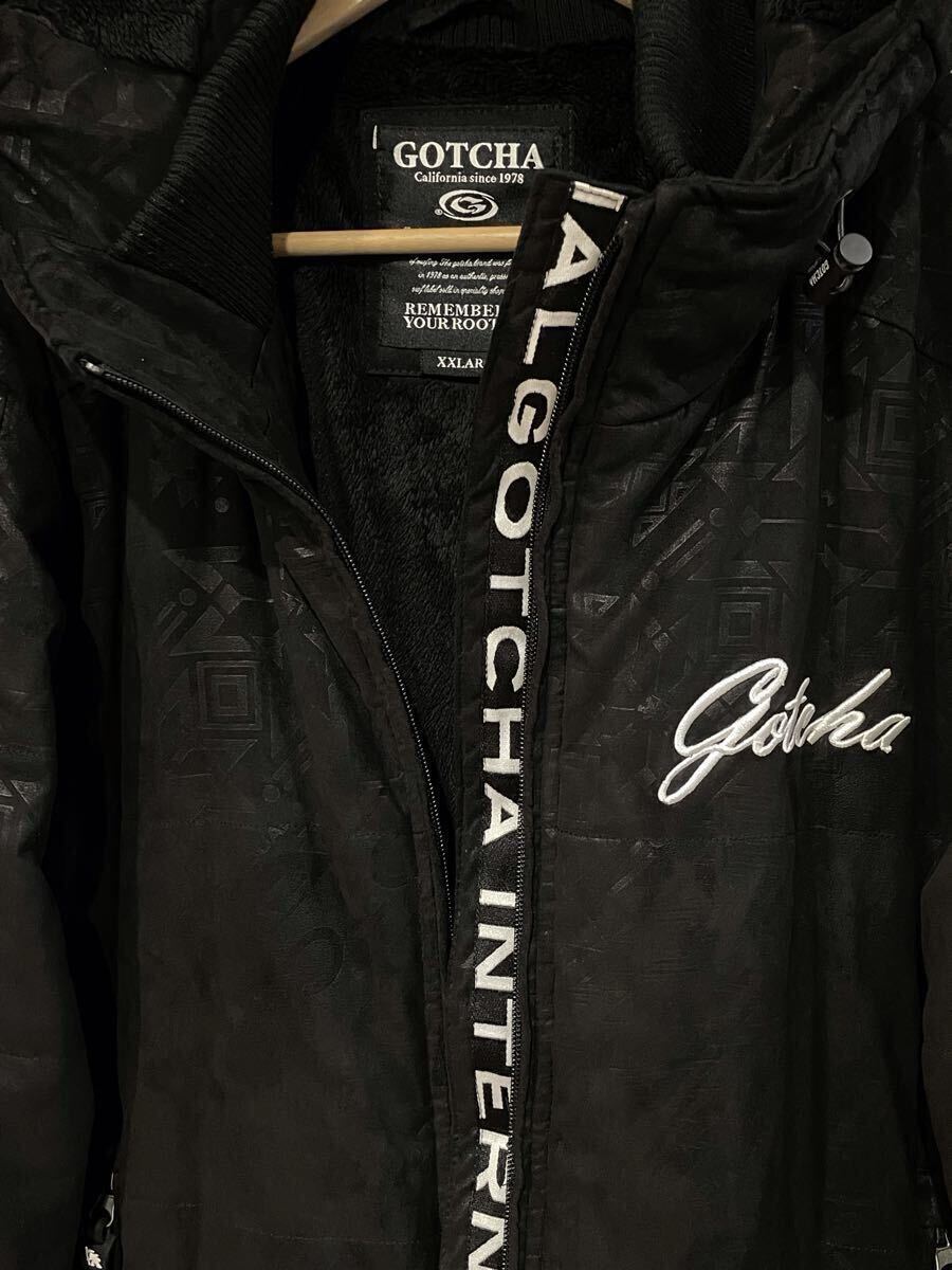 ゴルフにも! GOTCHA ガッチャ 豪華刺繍 中綿 ジップアップジャケット 裏地ファー 総柄 ブラック 黒 XXLサイズ メンズ ○ 新規×