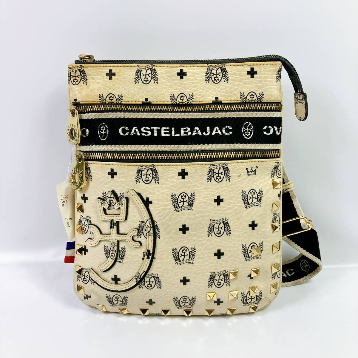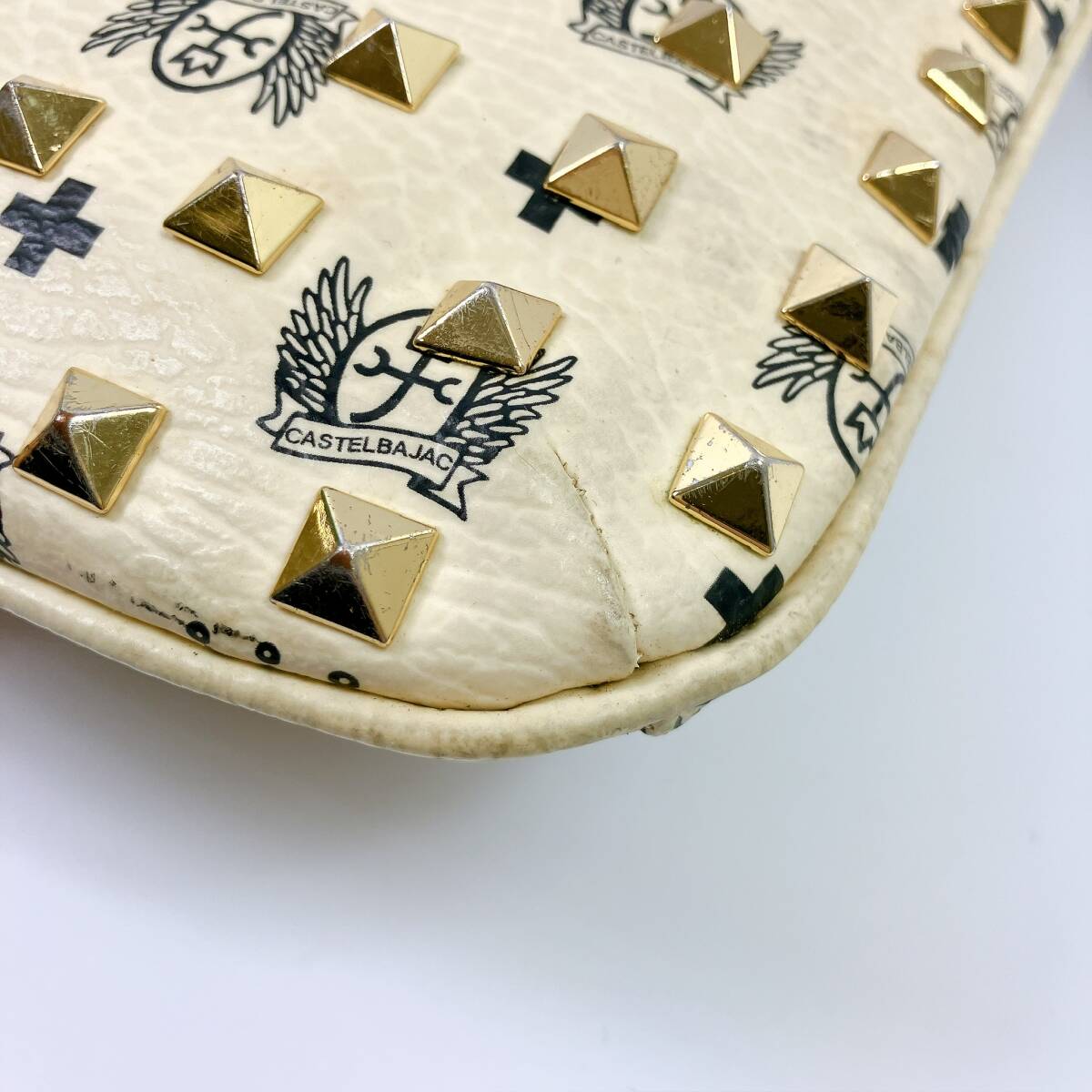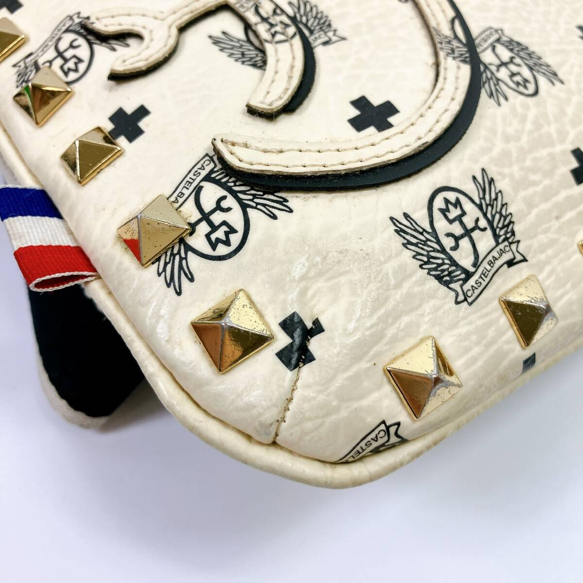 1820◯ CASTEL BAJAC カステルバジャック ショルダーバッグ メンズ レザーバッグ 総柄 ホワイト ゴールド ブラック 白 黒 スタッズ