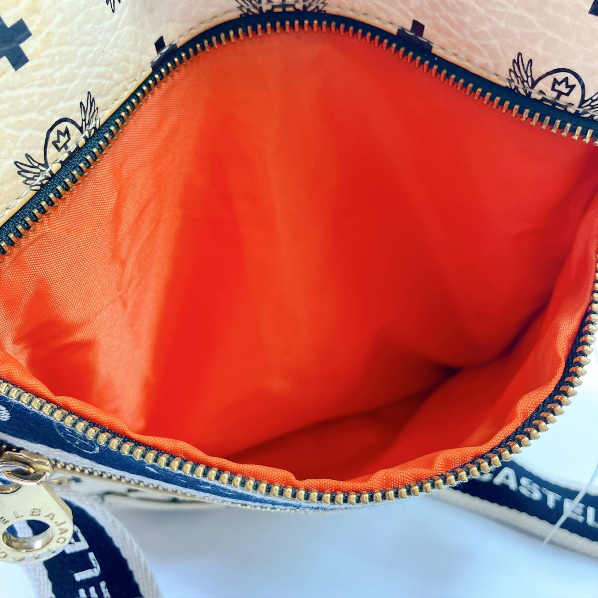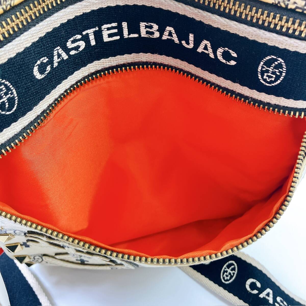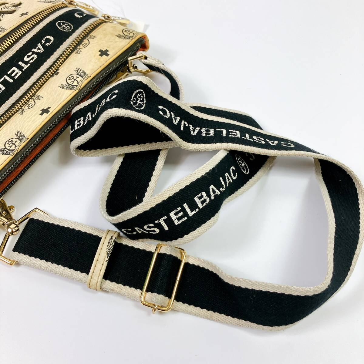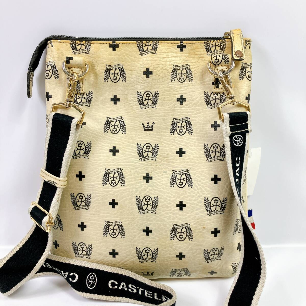 1820◯ CASTEL BAJAC カステルバジャック ショルダーバッグ メンズ レザーバッグ 総柄 ホワイト ゴールド ブラック 白 黒 スタッズ