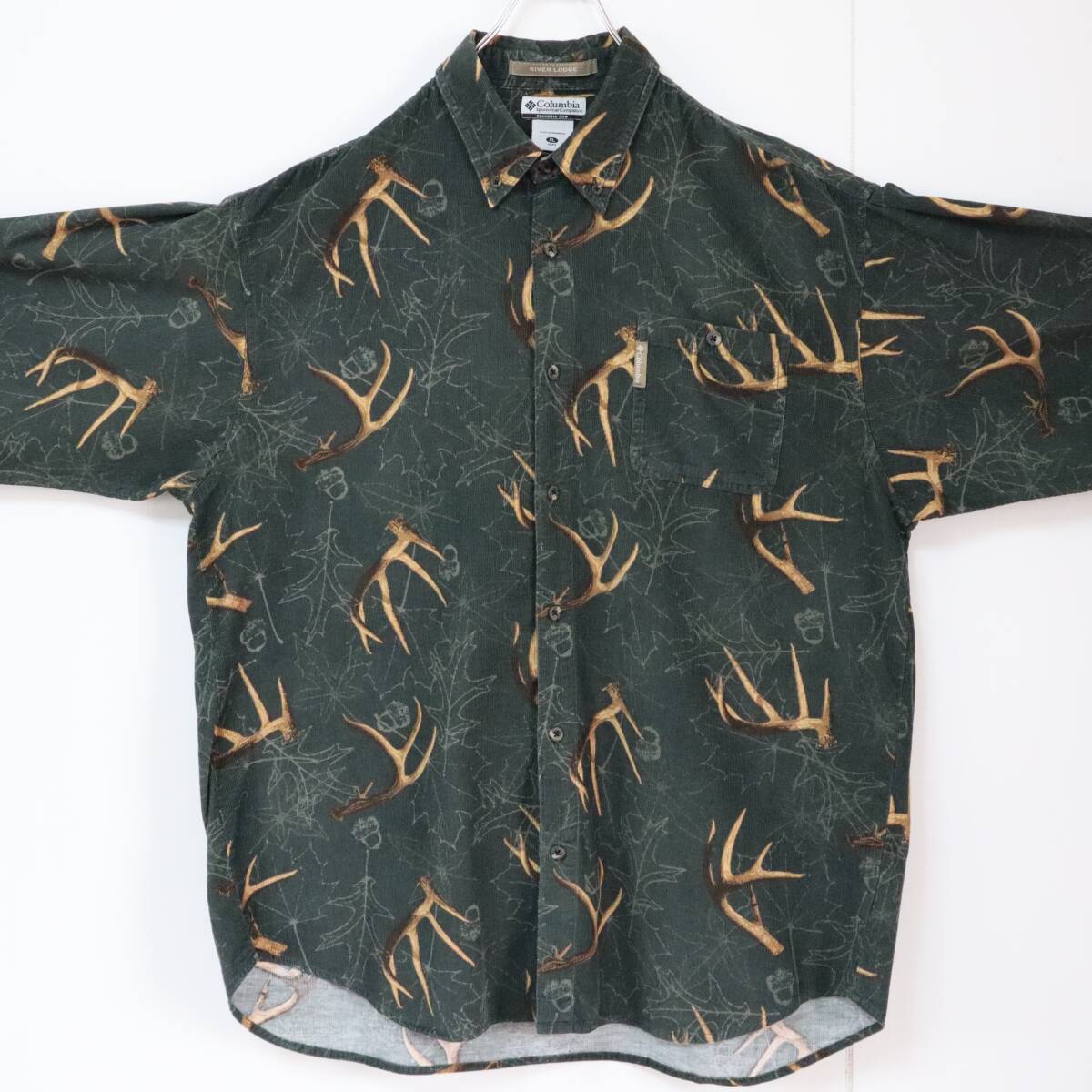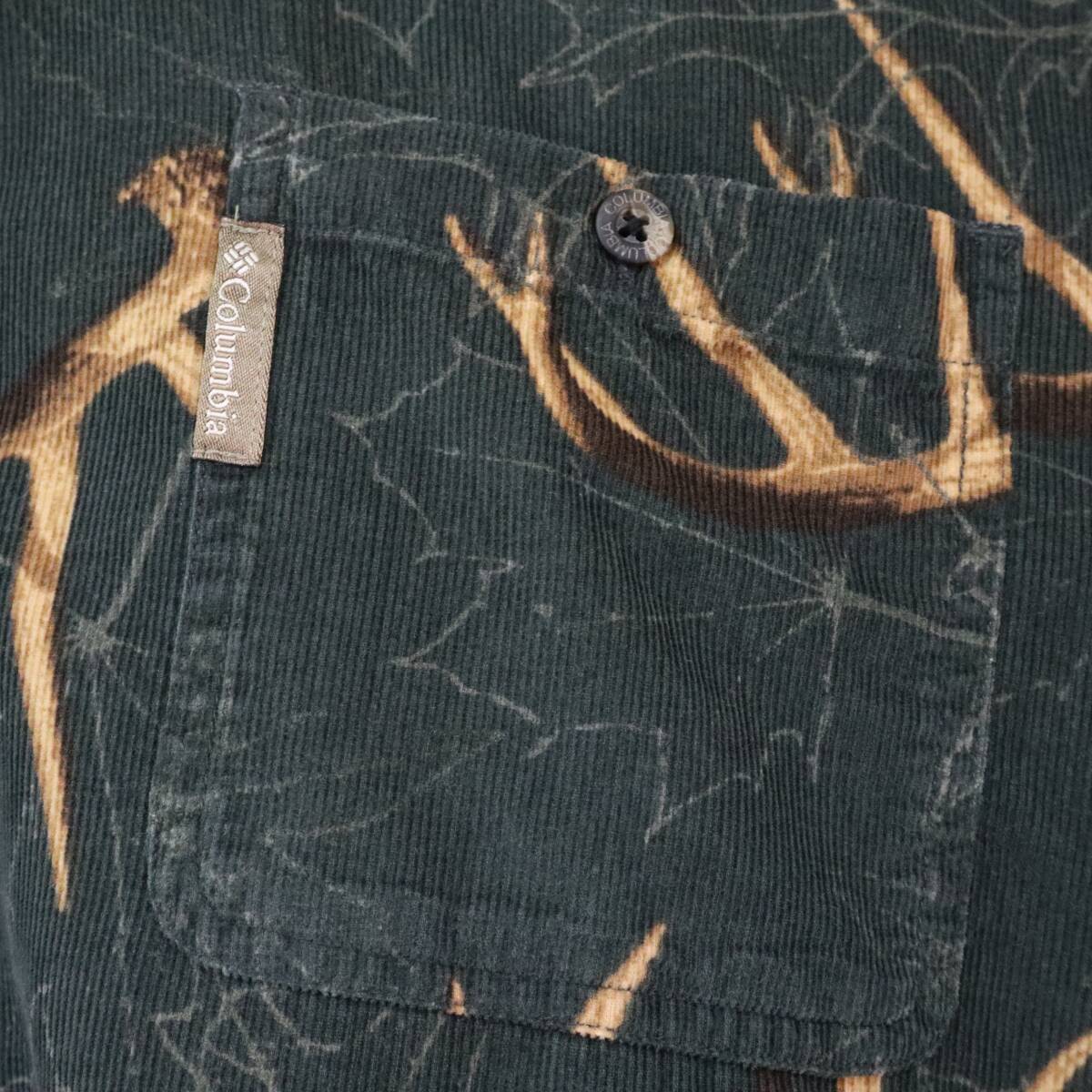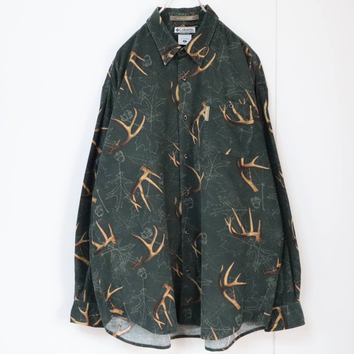 【シカの角柄】コロンビア BDシャツ コーデュロイシャツ 総柄シャツ アニマル柄