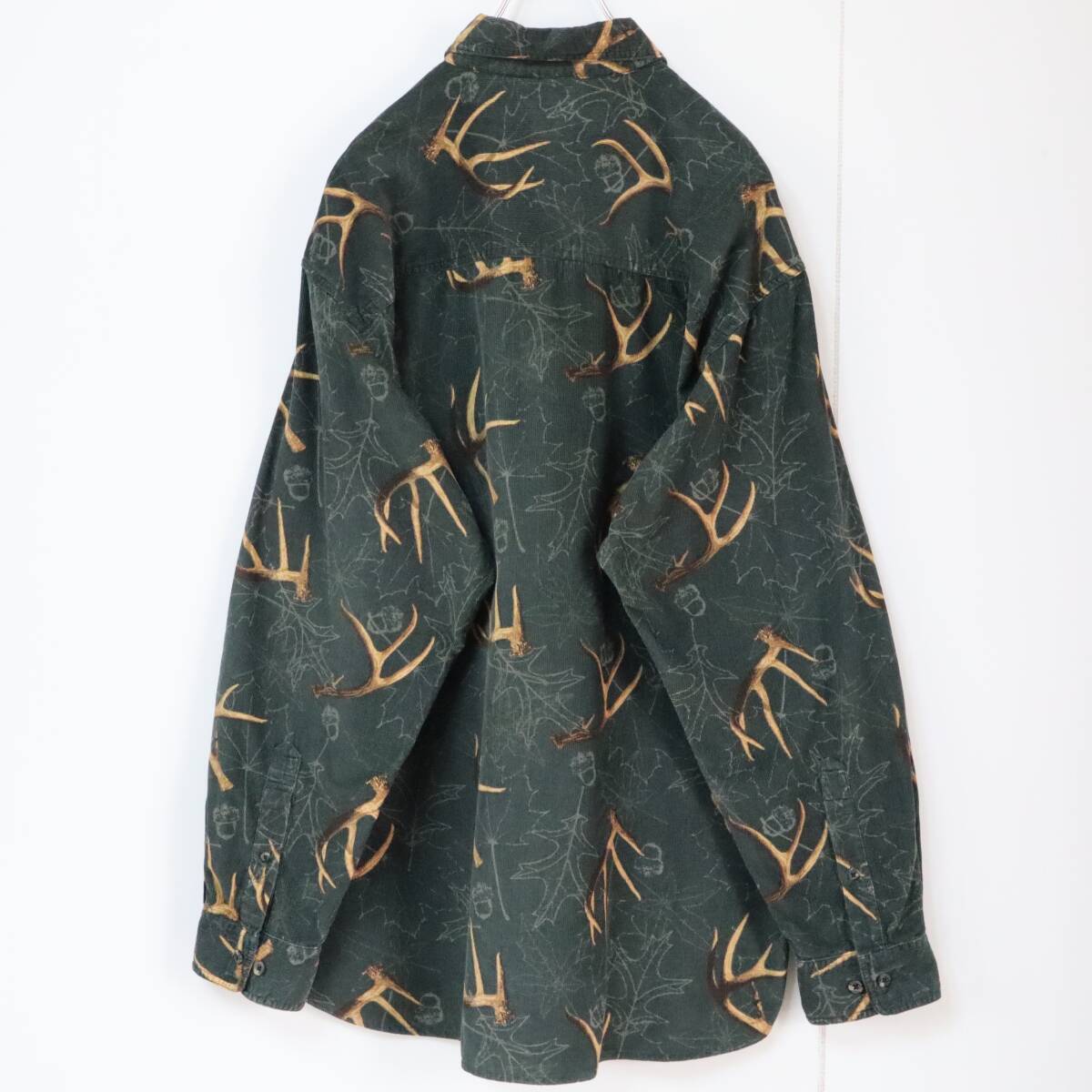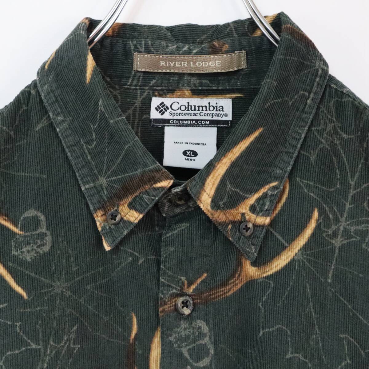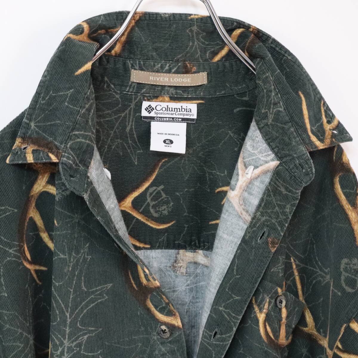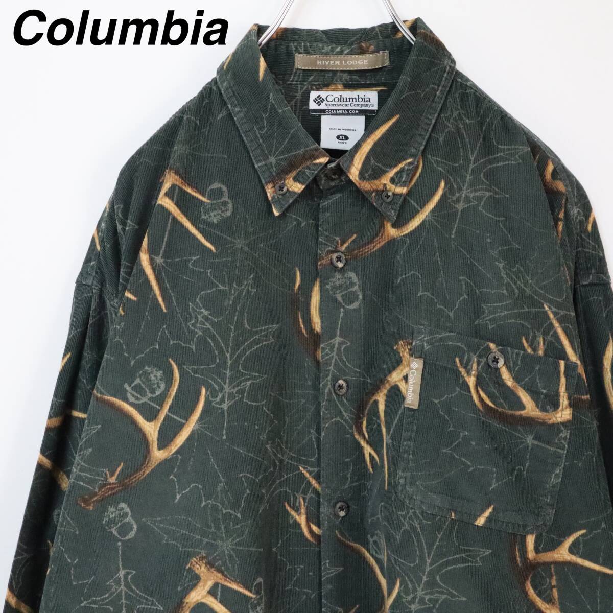 【シカの角柄】コロンビア BDシャツ コーデュロイシャツ 総柄シャツ アニマル柄
