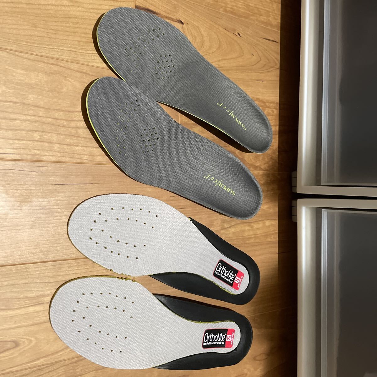 純正の中敷は未使用、使っていたスーパーフィートの中敷もお付けします。