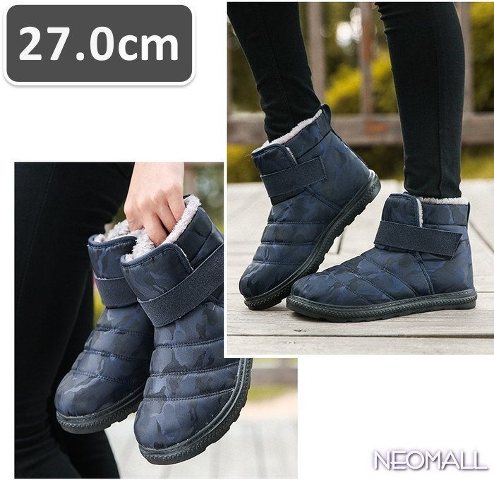 ユニセックス スノーシューズ 【870】 27.0cm 迷彩ネイビー ムートンブーツ スニーカー ウィンターブーツ 裏起毛 防水 防寒 防滑 冬用靴