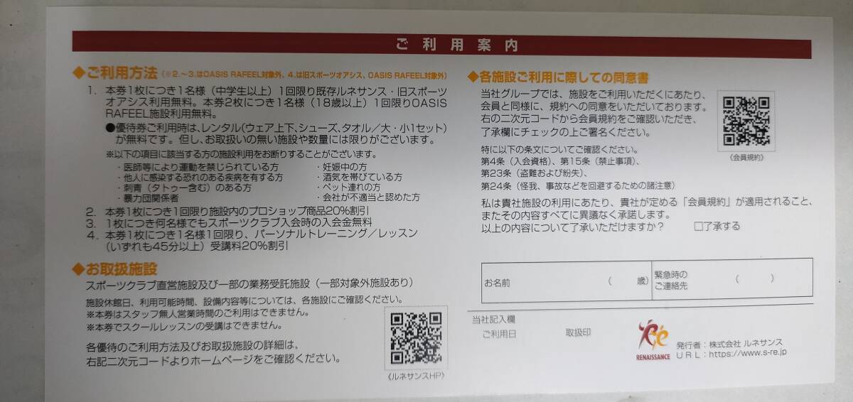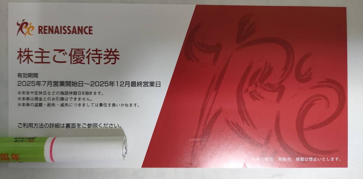 株主優待 RENAISSANCE スポーツクラブ ジム ルネッサンス スポーツオアシス 2025年12月末期限 ルネサンス