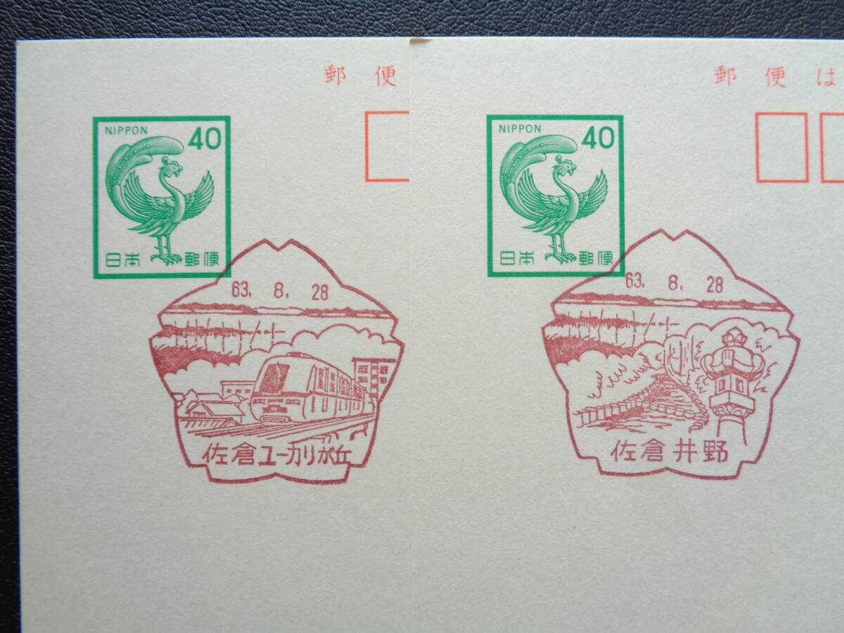 鳳凰はがき    初日印/風景印    千葉県2枚    佐倉井野//S63.8.28   佐倉ユーカリが丘/S63.8.28