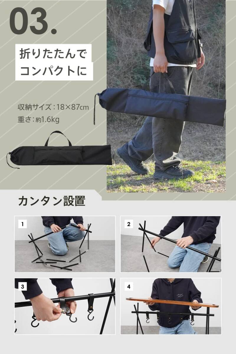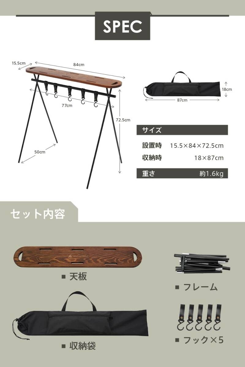 AND MYSELF ハンギングラック ランタンスタンド 【天板付き】 折り畳める ランタンハンガー 軽量 アルミ合金製 専用収納袋付き