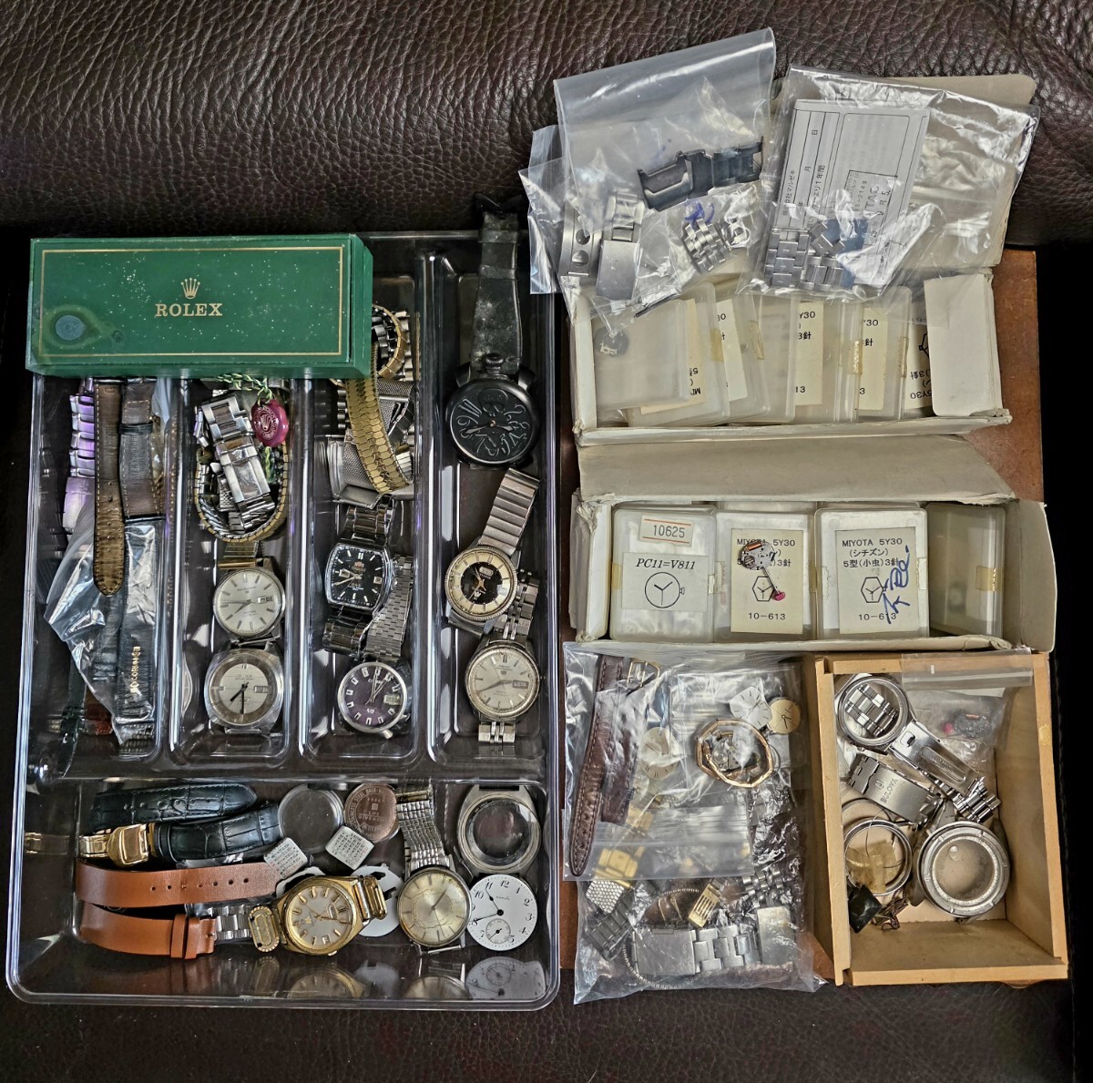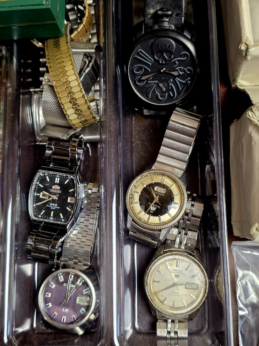 セイコー、シチズン、オリエント、IWC などの腕時計本体および付属品のまとめ売りです。