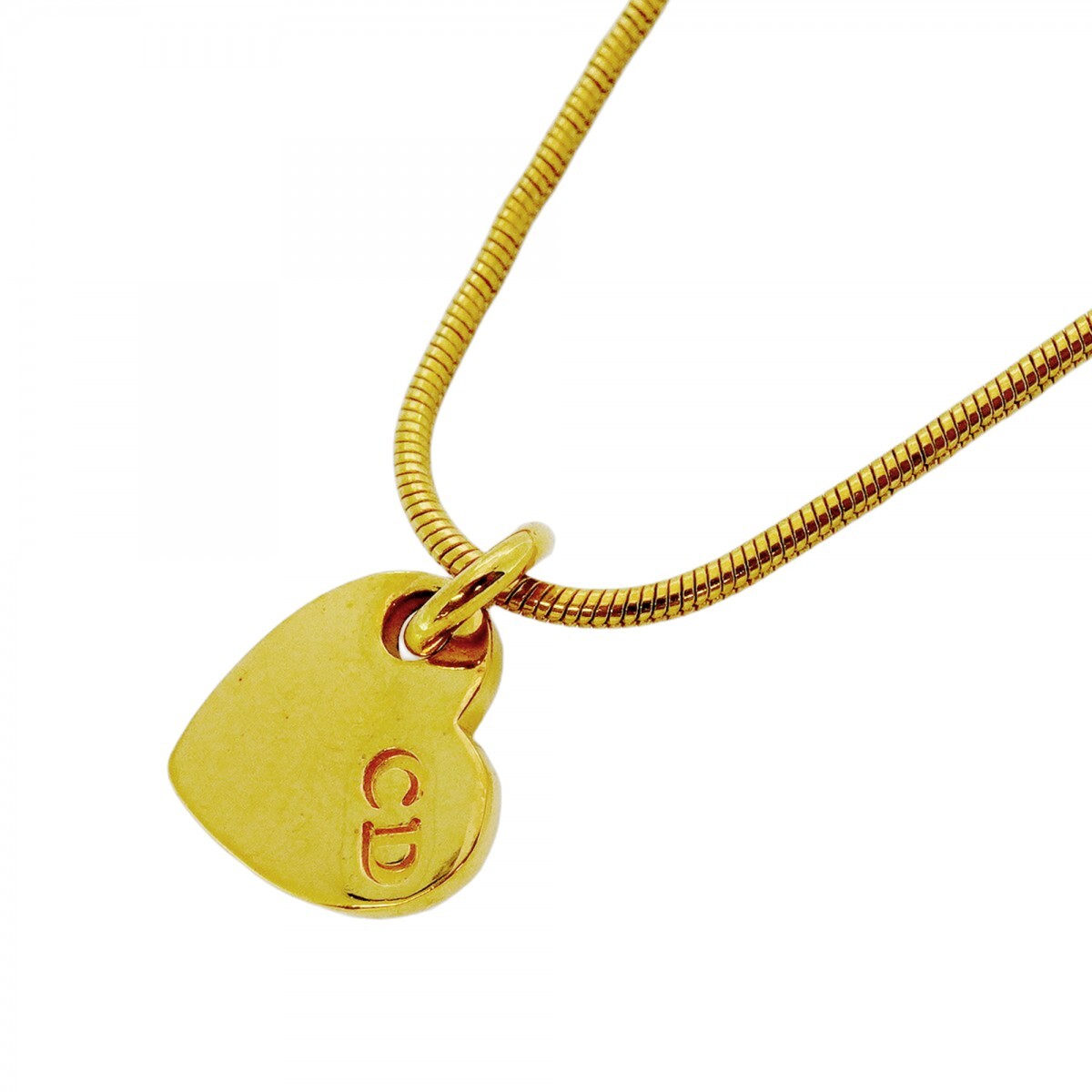 【5jib0690】クリスチャンディオール ネックレス CDロゴ ハートモチーフ GPメッキ ゴールド【中古】レディース