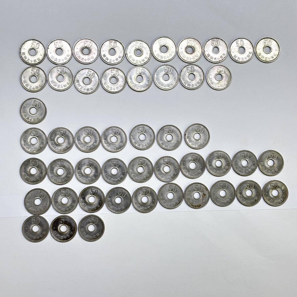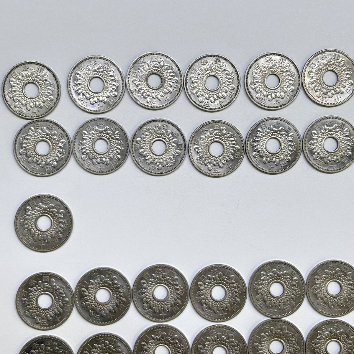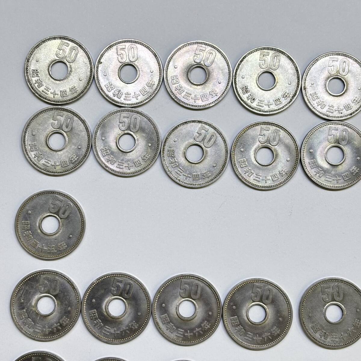 ○ 旧50円硬貨 昭和34年 35年 36年 37年 49枚まとめて 菊 穴あき ニッケル貨 日本 古銭 硬貨 ○K01-1010 |