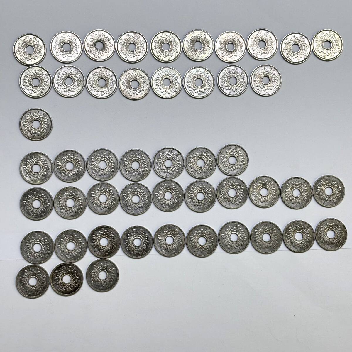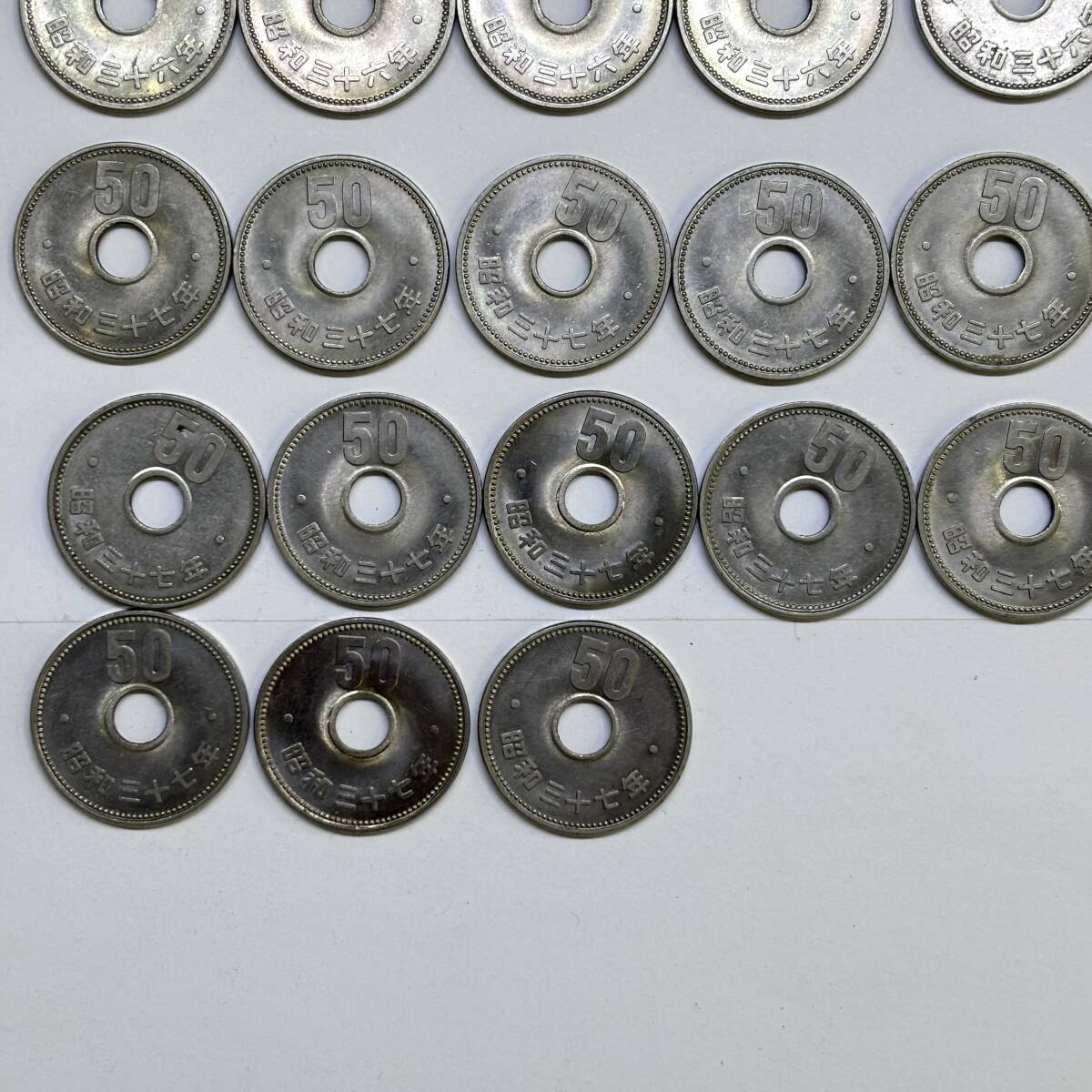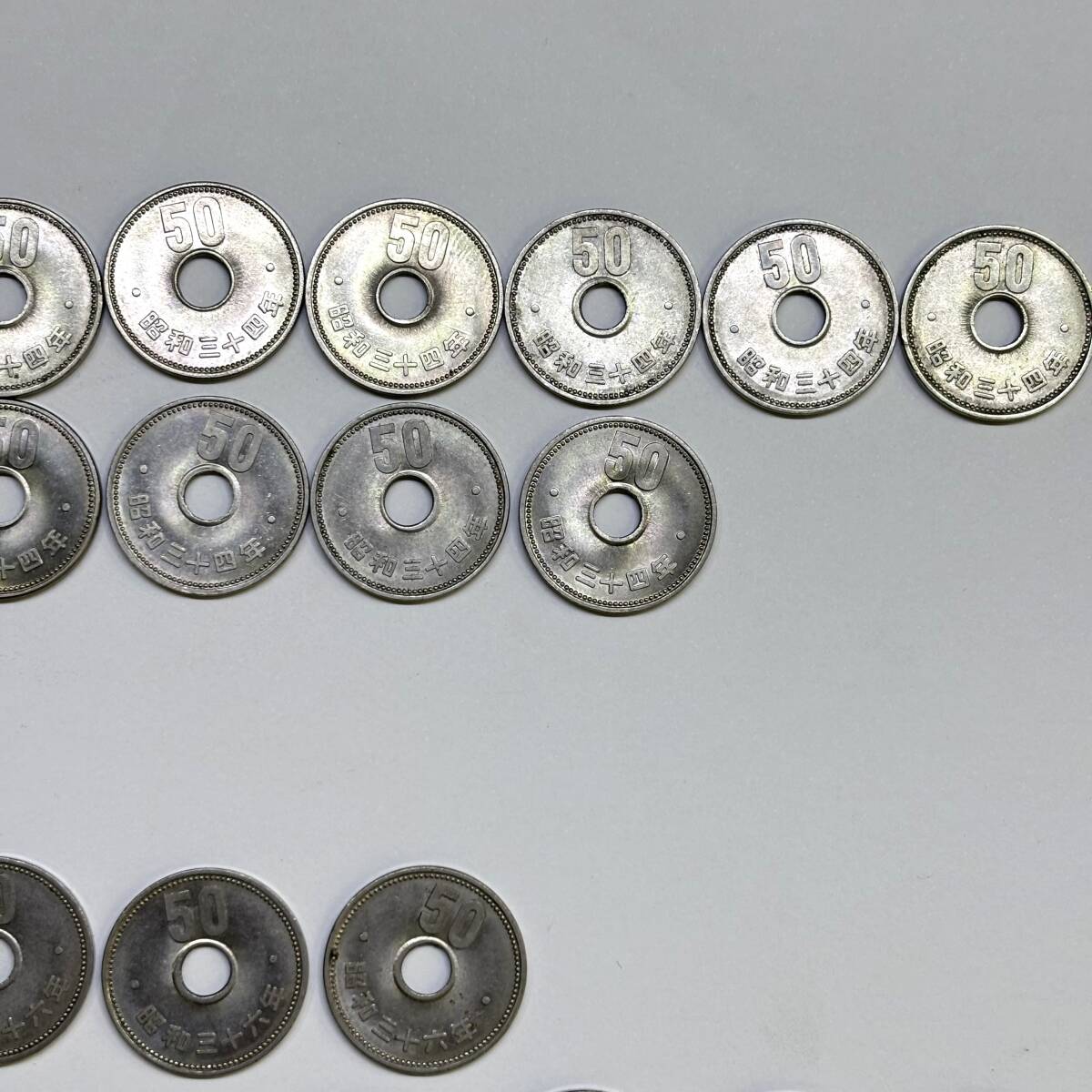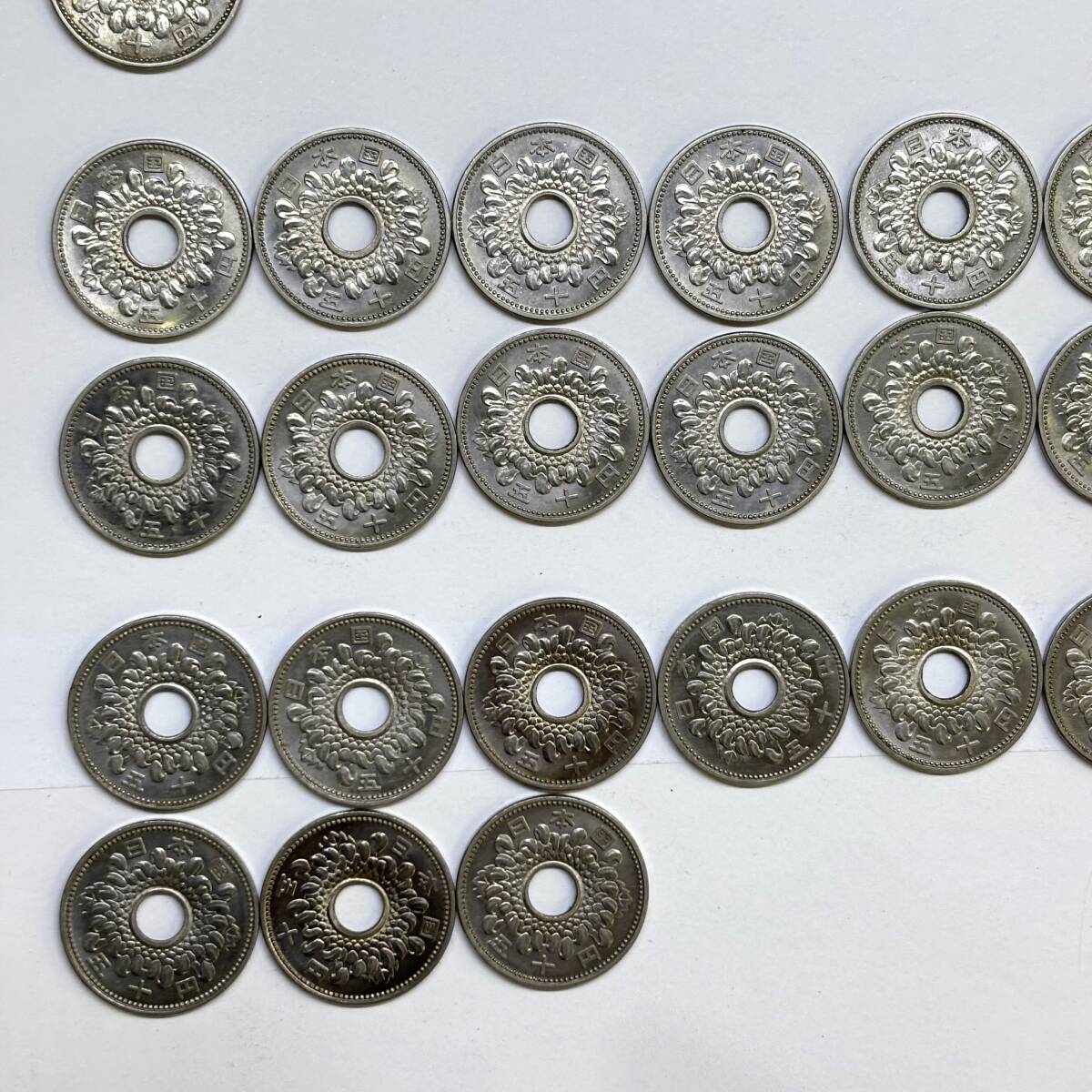 ○ 旧50円硬貨 昭和34年 35年 36年 37年 49枚まとめて 菊 穴あき ニッケル貨 日本 古銭 硬貨 ○K01-1010 |