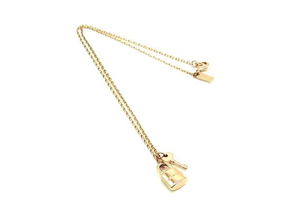 ■美品■ COACH コーチ ラインストーン 鍵モチーフ ネックレス ペンダント アクセサリー レディース シャンパンゴールド系 DI8087