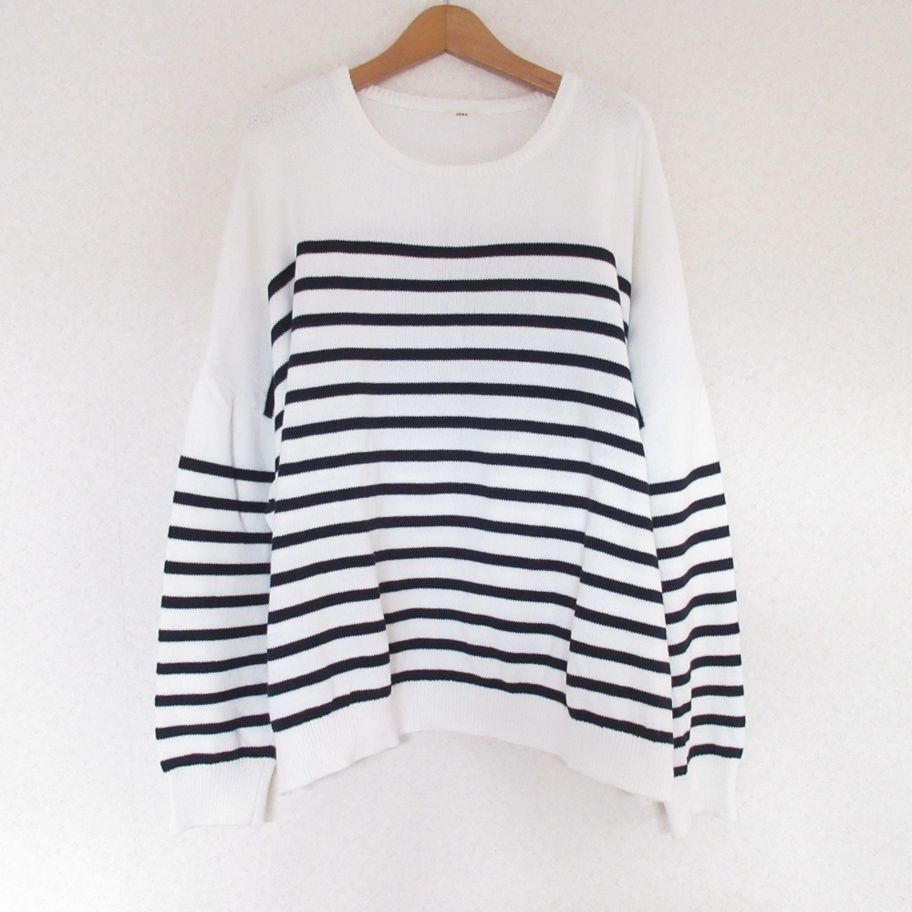 美品 IENA イエナ ボーダー ワイドニットセーター カットソー ホワイト ネイビー