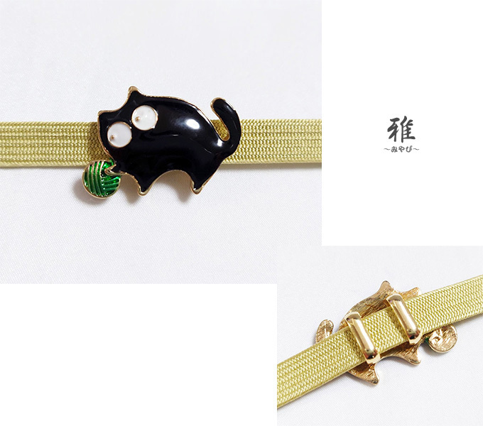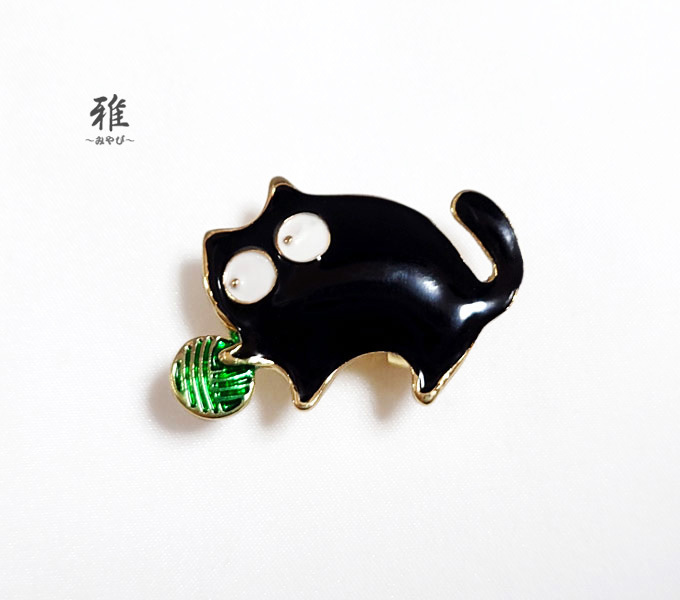 【 雅 】可愛い。o○毛糸玉と黒猫 帯留め(ブローチ変更可)