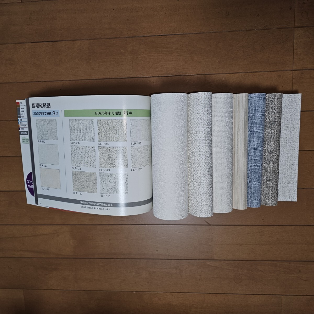リフォーム、DIY等の資料の為に保管していた物です。壁紙の参考資料に100種類の現物カタログです。自分好みの壁紙をチョイスしてDIYを楽しんで下さい。