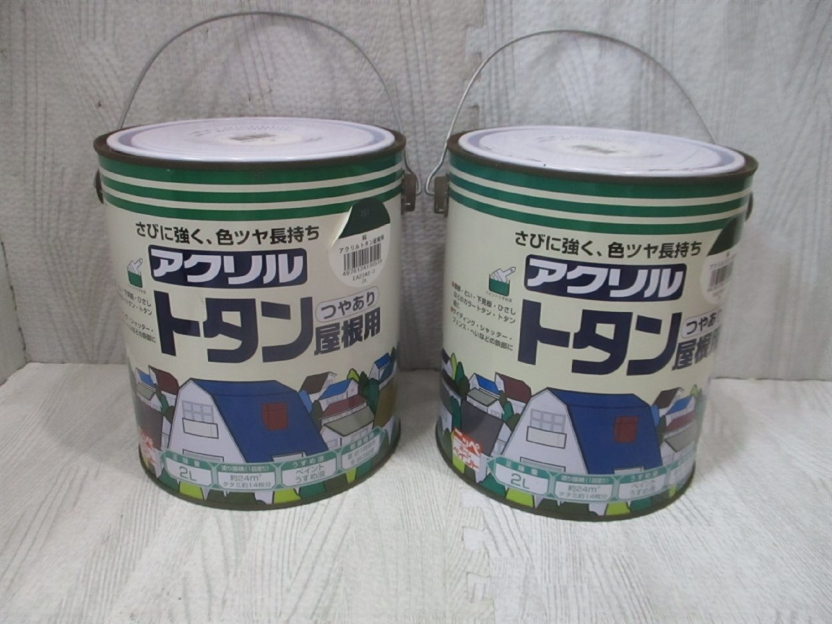 さびに強く、色ツヤ長持ち。高性能アクリル系。 用途 ★屋根・とい・下見板・ひさしなどのカラートタン・トタン板の塗り替えに最適。 ★サイディング・シャッター・フェンス・鉄部にも最適です。 特長 ★特殊なアクリル樹脂を使用しているため、抜群の耐候性(耐久性)があります。 ★長時間、鮮明な色と美しいツヤを保ちます。 ★乾きが早いので、結露によるツヤびけや白化が少なくなりました。 ★ペイントうすめ液でうすめられ、はじめての方にも、ハケ、ローラーで簡単に塗ることができます。 ■ うすめ方 塗料の粘度が高く、塗りにくいときは、ペイントうすめ液で少しうすめてください。 ★ 容量/塗り面積(1回塗り) 2L 24m2(タタミ約14枚分) 7L 83m2(タタミ約50枚分) 14L 166m2(タタミ約100枚分) ■ 乾燥時間 ●夏 1時間30分 ●冬 3時間 ※注意 ホームセンターの商品入れ替え品です。B級品や不良品ではありませんが、多少の凹みやキズ、サビなどあります。 ノークレーム・ノーリターンでお願いします。 | |