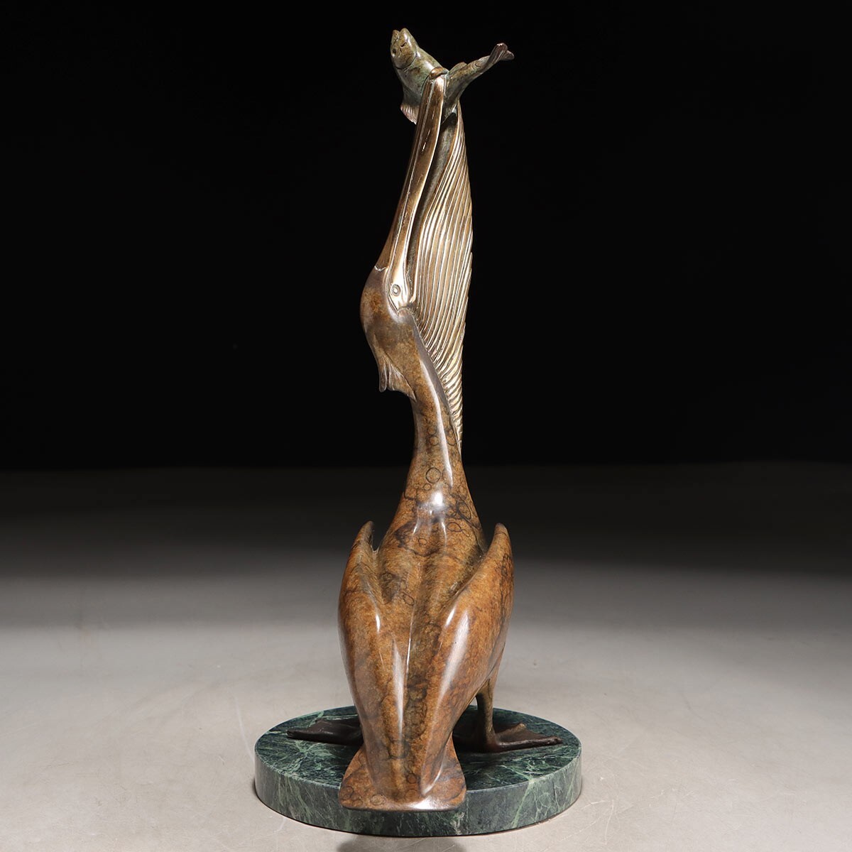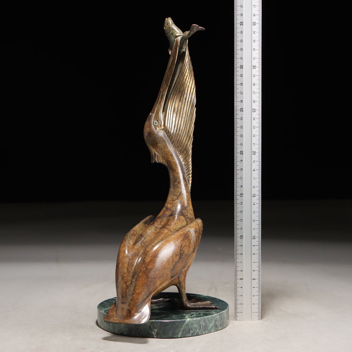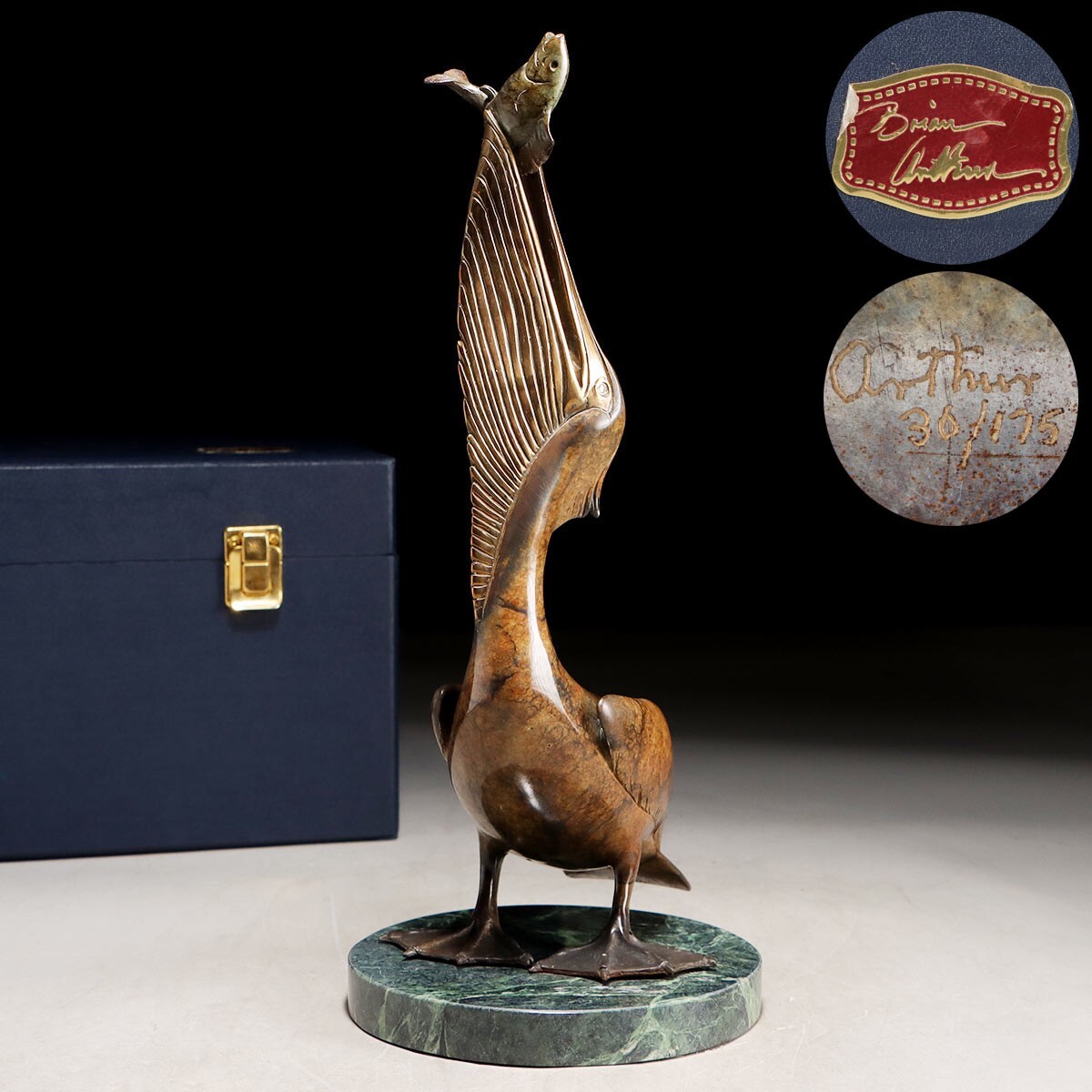 ご覧いただきありがとうございます。 彫刻美術 【Brian Arthur】 ブロンズ ペリカンと魚 置物 箱付属の出品です。