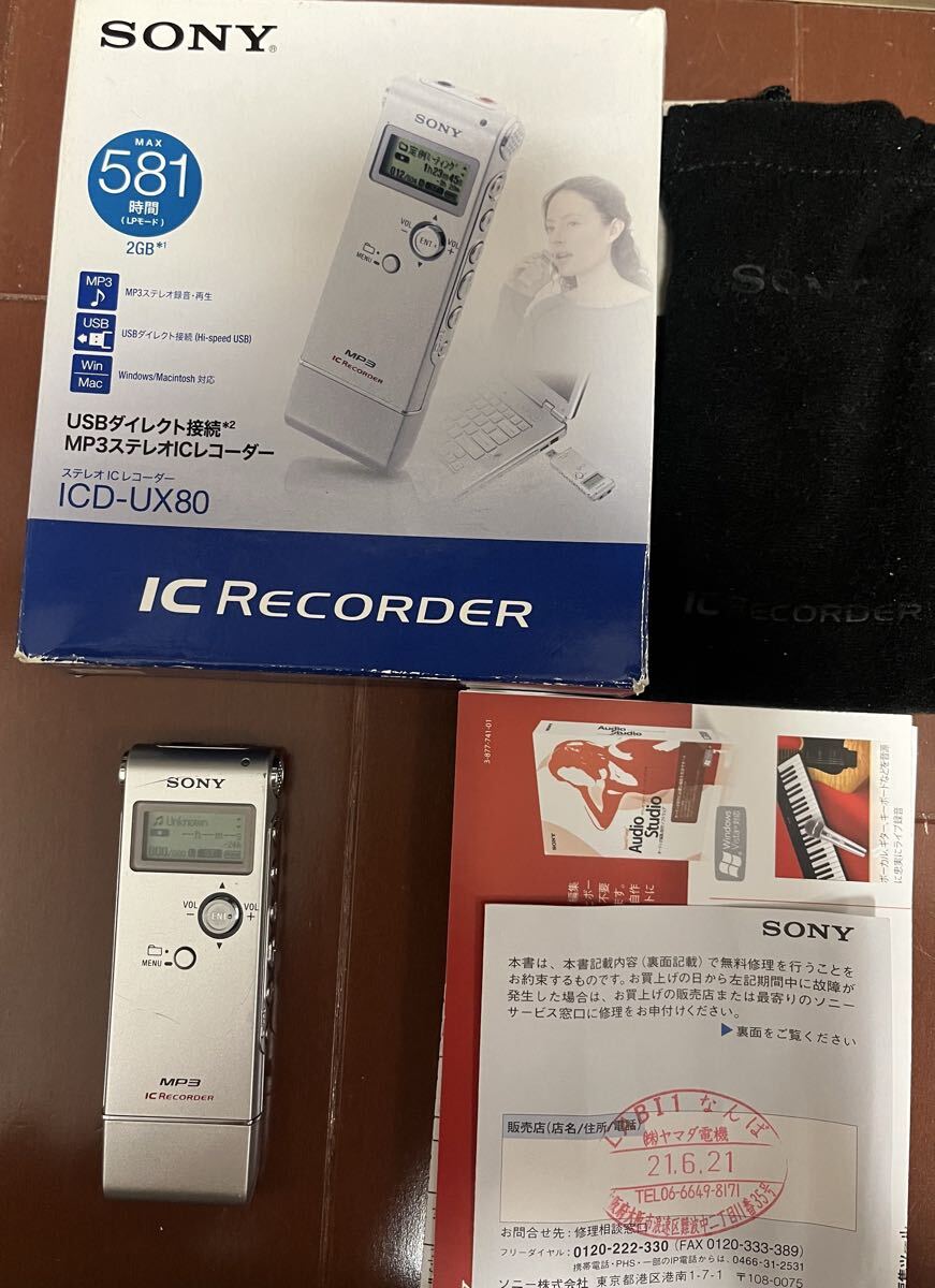 ソニーのステレオICレコーダー「ICD-UX80」です。