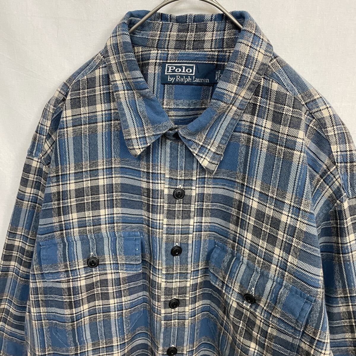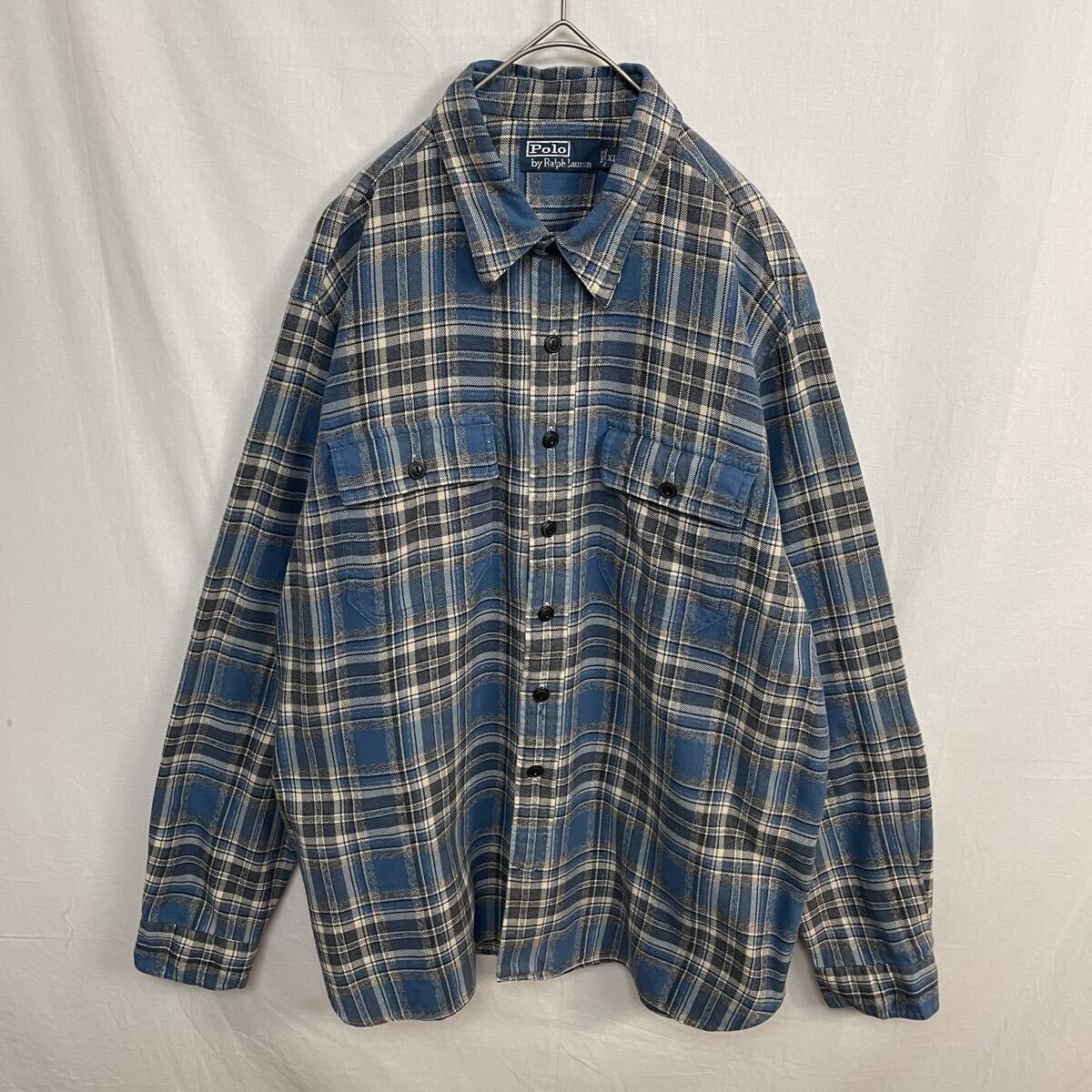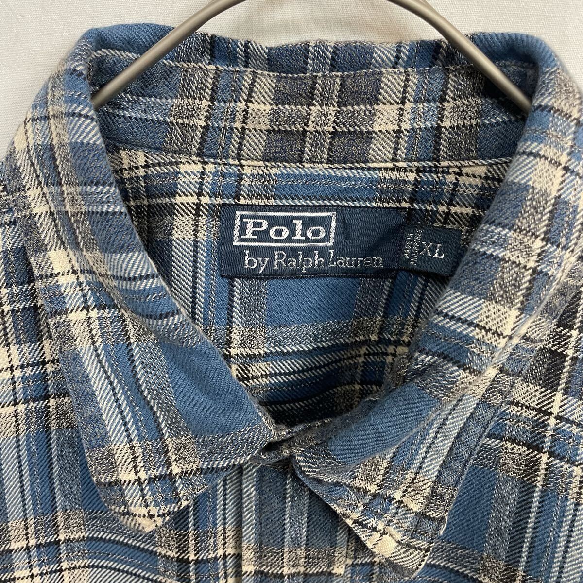 90's POLO by RALPH LAUREN ネルシャツ 古着 XLサイズ チンストラップ付き ヴィンテージ