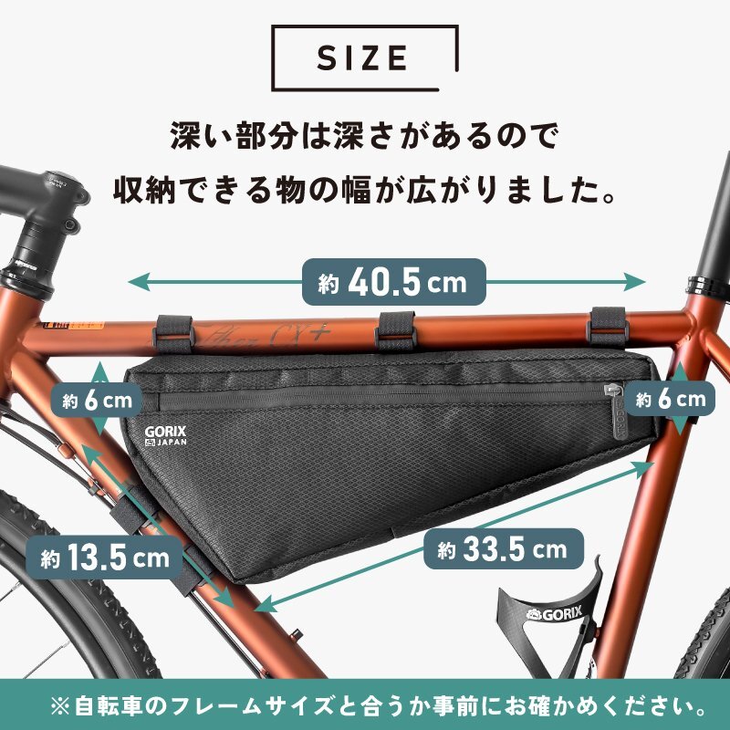 ロードバイクやクロスバイク、マウンテンバイクなどのフレームに取付けできる自転車用フレームバッグ。 ツーリングや長距離のロングライド、自転車旅、普段の街乗り、自転車通勤など様々なシーンで大活躍する便利なバッグです。 容量は3Lと見た目より荷物がよく入る収納力。 左右にポケットがあり、片方はサブポケットとなってスマホなどの細めの物の収納に最適です。 フレームの空きスペースを有効活用しバッグを装着する事で収納箇所を拡大。 シンプルでカジュアルなアウトドアデザインなのでどんなフレームにもぴったり。 撥水加工の生地と防水ジッパーを採用。 ジップは広く開ける事ができきるので取出しも楽々。 またペダリングの邪魔にならない幅サイズで気にならない。 使用頻度の高い自転車通勤や通学、自転車配達などにもおすすめなサイクルバッグ。 [デザイン] シンプルでブラックはどんな自転車にもマッチ。 カジュアルで大人っぽくおしゃれに。 [サイズ] MAX40.5cm。深い部分は深さがあるので収納できる物の幅が広がりました。 サブバッグとしても便利。 ペダリングの邪魔にならない幅サイズ。 [日常撥水レベル] 全体に撥水加工を施し短時間の弱い雨などに耐えれます。 防水ファスナー採用し隙間から入る水の侵入を阻止します。 ※撥水加工で完全防水ではございません。 [収納力] 大容量3L。チューブや鍵、工具や軍手、折畳傘、薄手のウィンドブレーカーなど入る。 またサブポケットはスマホなどの細めの物を収納するのに最適なサイズ。 両サイドを上手く活用できます。 [組合わせて] サドルバッグやフロントバッグ、トップチューブバッグなどを組み合わせれば収納力がさらにアップ! [6点固定] 自転車フレームに6点で固定するのでダンシングなどで左右に揺れてもフレームバッグは安定し邪魔にならない。 [夜間反射ロゴ] 夜間反射機能・事故防止などの安全対策に。暗闇でライト等の光に反射して存在をアピールし追突などのリスクを軽減。 無いよりも視認性が向上します。 商品内容自転車用フレームバッグ サイズ長さ上/下40.5/33.5cm/縦6cm~17cm/幅約6cm 材質ナイロン生地 重量約185g 附属ベルト取付可能径約φ3-5cm 最大容量約3L 防水仕様日常撥水レベル、防水ファスナー(※完全防水ではありません) 商品は入荷によりキズがある場合があります。 傷や細かい汚れが気になる方や神経質な方は入札をお控え下さい。 入荷時期により予告無く一部仕様変更する場合が有ります。 カラーはディスプレイ種類環境等により実物と異なって見える場合がございます。 |