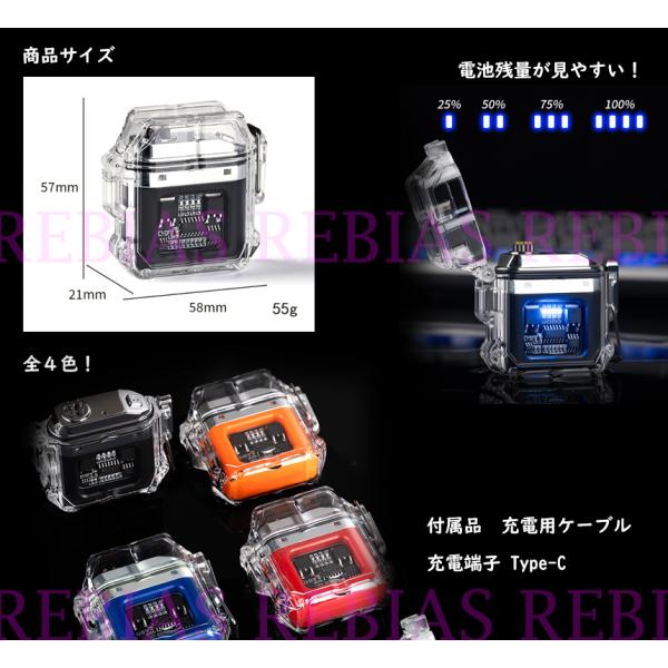 プラズマライター「クリスタル」スケルトンタイプの透明ボディに充電ゲージのLED搭載!暗闇でプラズマとLEDが綺麗に光ります♪防水仕様の堅牢で美しいデザイン、4色からお選びいただけます♪商品内容本体、充電用ケーブル