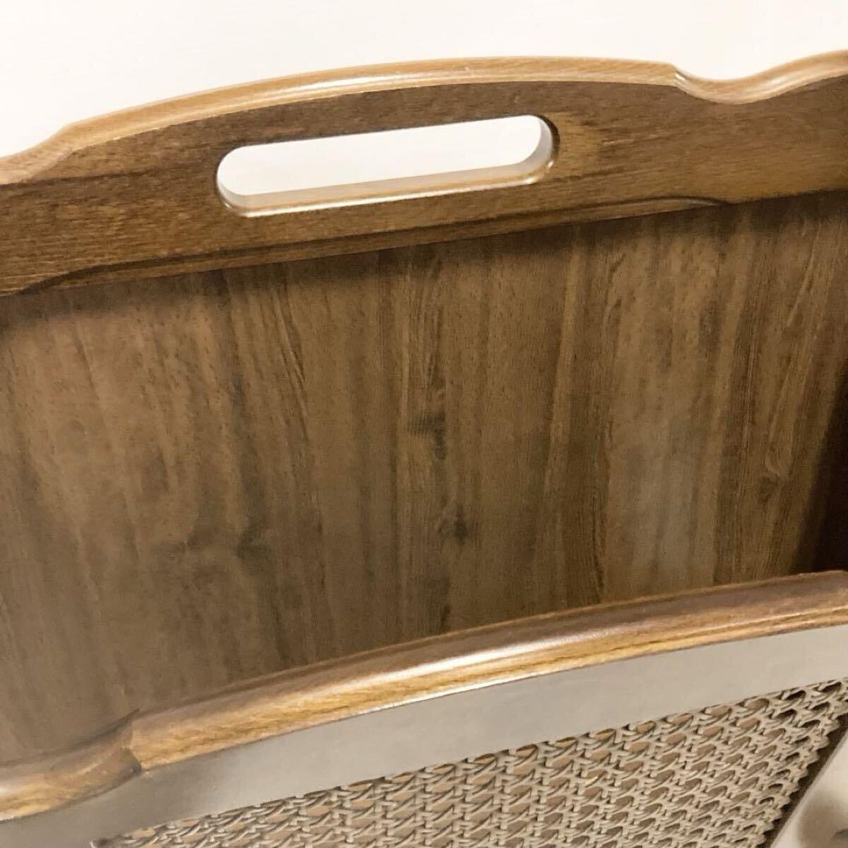 籐編みのデザインが特徴的で、シンプルながらもエレガントな印象を与えます。雑誌や本を整理するのに最適なアイテムです。