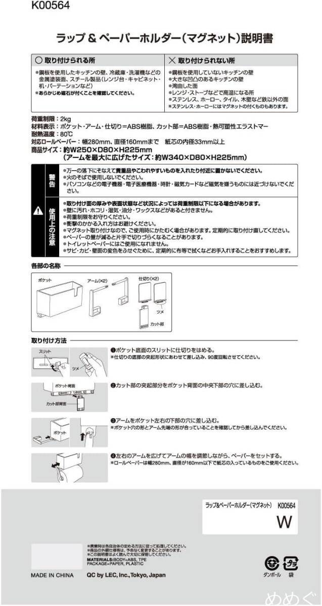 レック ラップ & ペーパーホルダー ホワイト (ラバーマグネット) 耐荷重2kg 海外製大型ロールペーパー対応