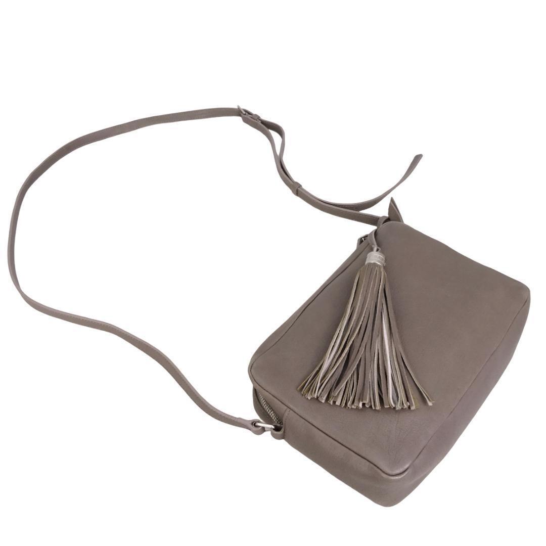 商品の種類 ■ YSL タッセル クロスボディ カメラバッグ グレー レザー 470299 斜めがけショルダーバッグ