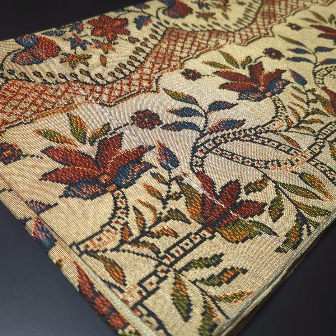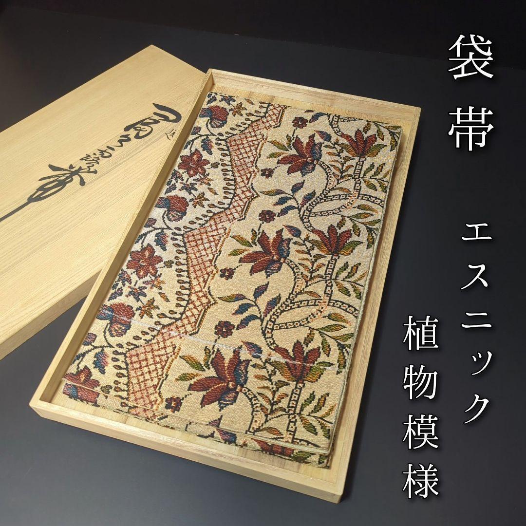 正絹 六通 エスニック 植物模様 未仕立ての袋帯になります^ ^