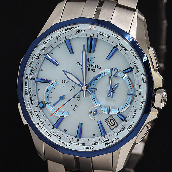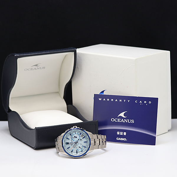 1円 保/箱付 稼働 良品 カシオ オシアナス OCW-S3400 電波ソーラー ブルー文字盤 メンズ腕時計 0004400 10DKT SMZ