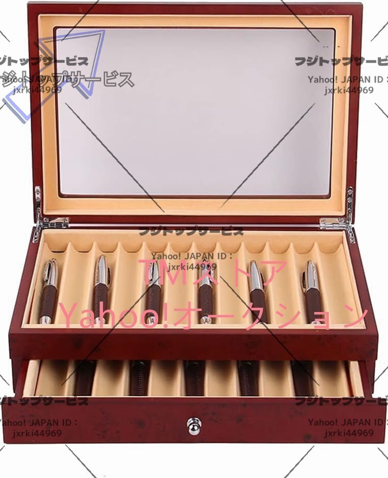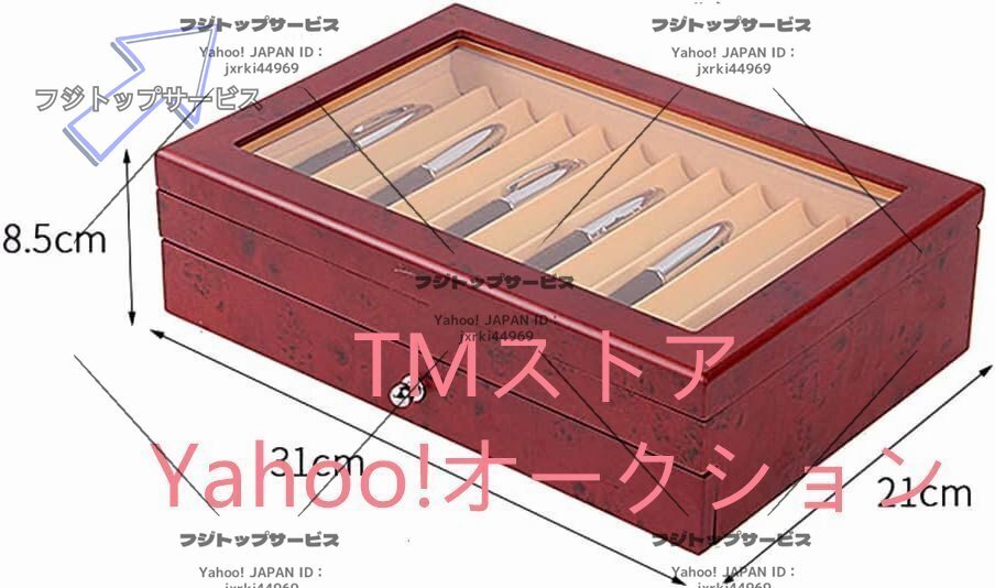 数あるオークションの中からご覧頂き、本当にありがとうございます♪当方、お客様が安心して取引が出来るよう真心込めて【商品詳細】★状態:新品未使用●色:赤●サイズ:31 x 21 x 8.5 cm●材質:木製ガラス●万年筆寸法:31x21x8.5cm。 最大2