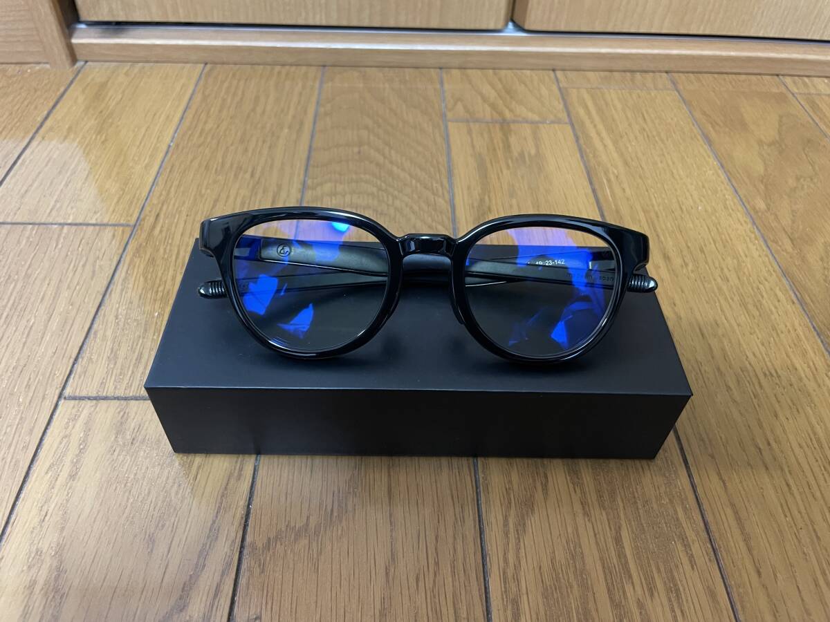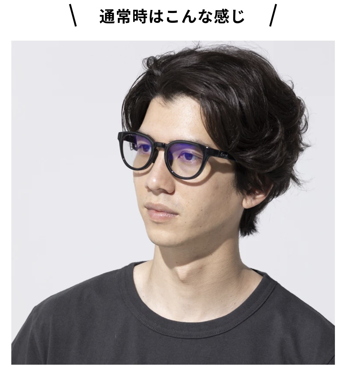 野外で日光に当たるとグレーに変化する調光レンズ搭載。さらにブルーライトカット機能も。