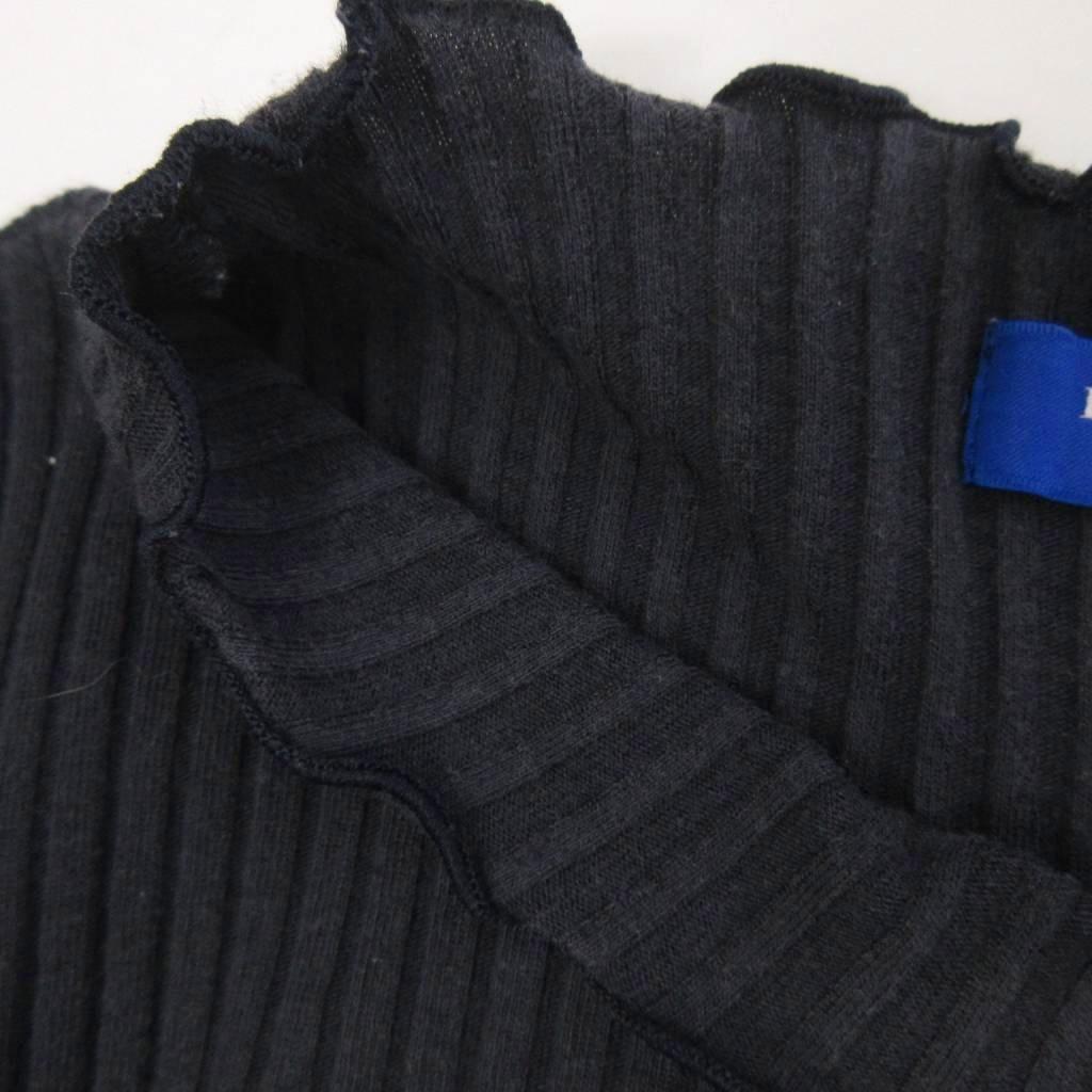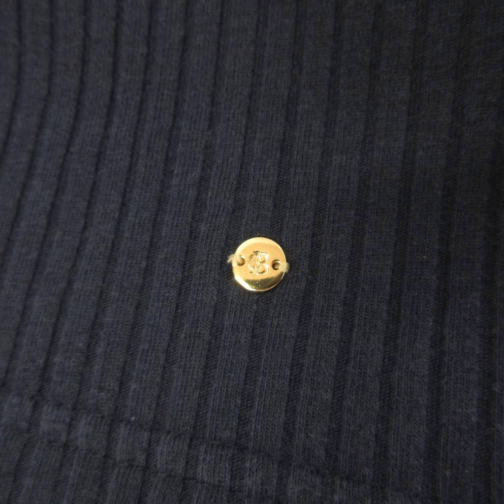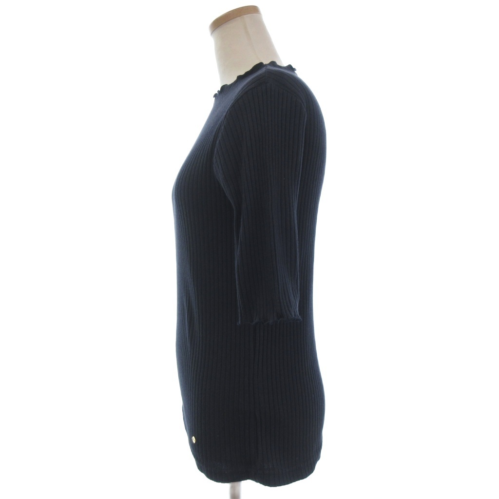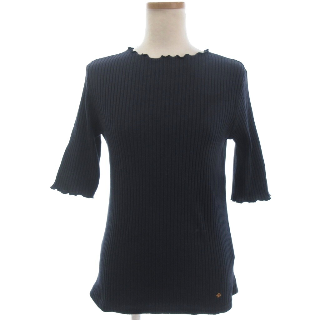 ブルーレーベルクレストブリッジ BLUE LABEL CRESTBRIDGE リブ メロウ フリル カットソー 五分袖 紺 ネイビー 38 M位 ■ECT レディース