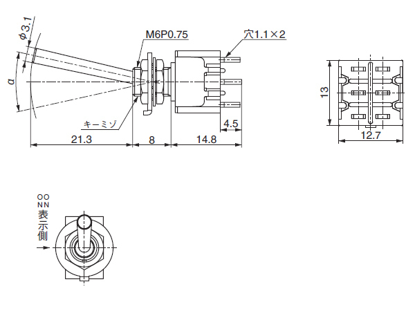 ■NKK M-2022 トグルスイッチ (28V/0.4A・ON-ON)