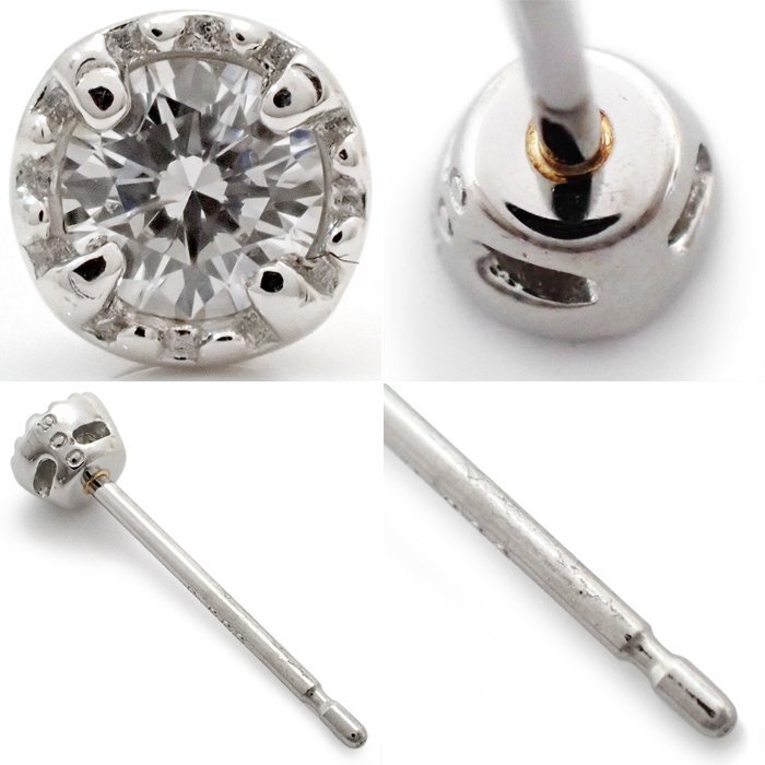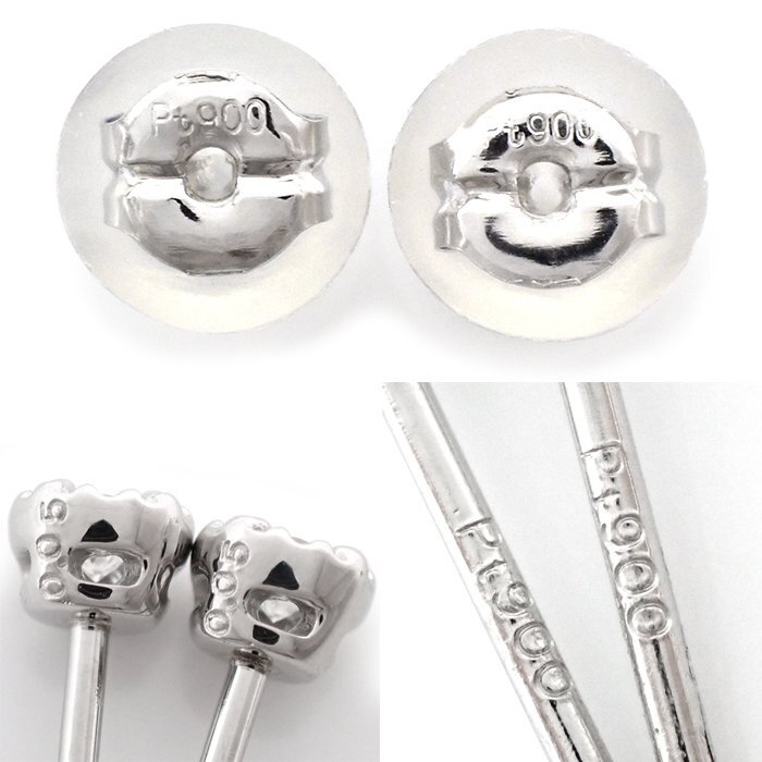詳細 | ダイヤモンド:0.05ct×2 重量:0.7g スタッドピアス(キャッチ式ピアス) ※ダイヤモンドには10倍のルーペで確認できる天然特有のインクルージョンがあります。 ※Pt900に僅かな小傷やくすみ・変色等があります。 | ||