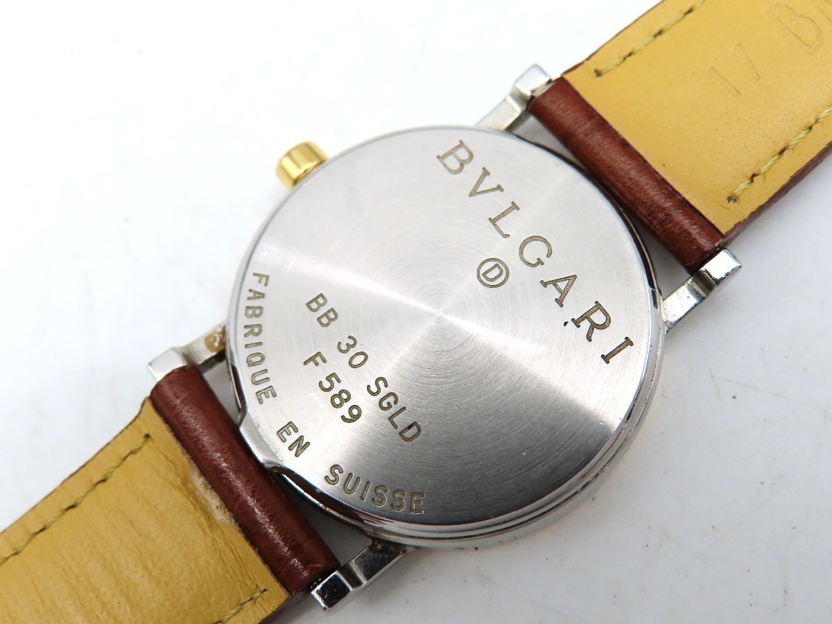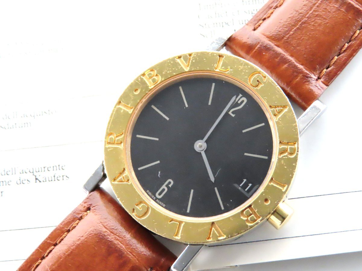 1円 ブルガリ BB30SGLD ブルガリブルガリ YG/SS/革 ブラック文字盤 ボーイズ 稼働 QZ 26161 EERA