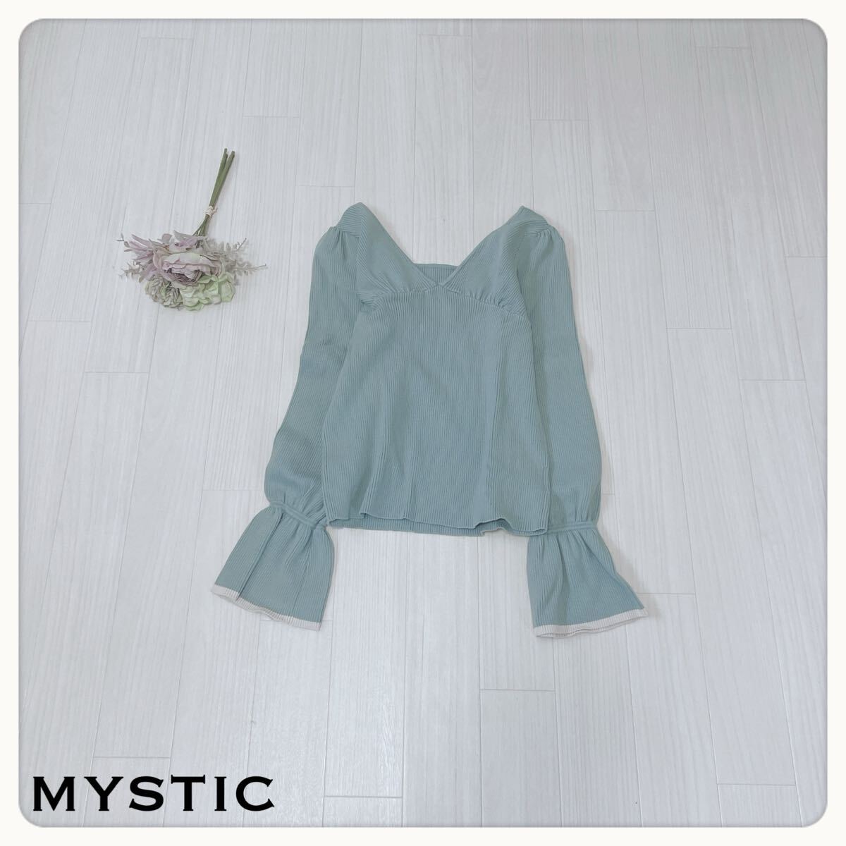 mysticのフレアスリーブが特徴的なリブカットソーです。前後2WAYで着用でき、スクエアネックとVネックの両方のデザインを楽しめます。リブラインが体のラインを美しく見せ、デコルテを綺麗に魅せてくれるフェミニンな一枚です。袖口のフレアデザインがアクセントとなり、女性らしい愛されコーデが完成します。カジュアルからきれいめまで幅広く活躍するアイテムです。