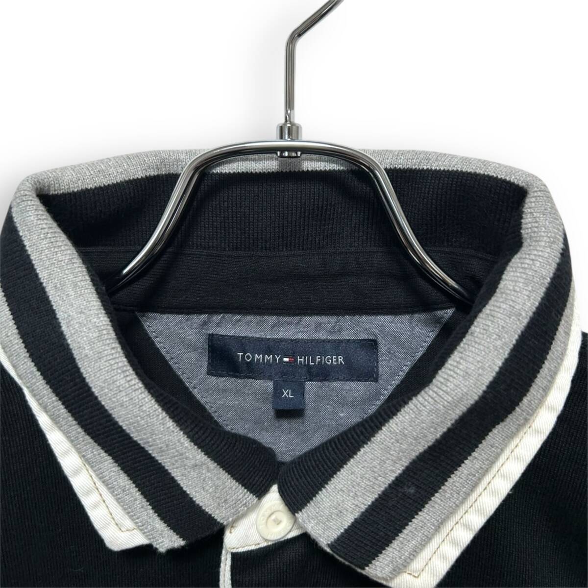 A2507/ TOMMY HILFIGER/トミー ヒルフィガー 長袖 ラガーシャツ ポロシャツ ブラック XL