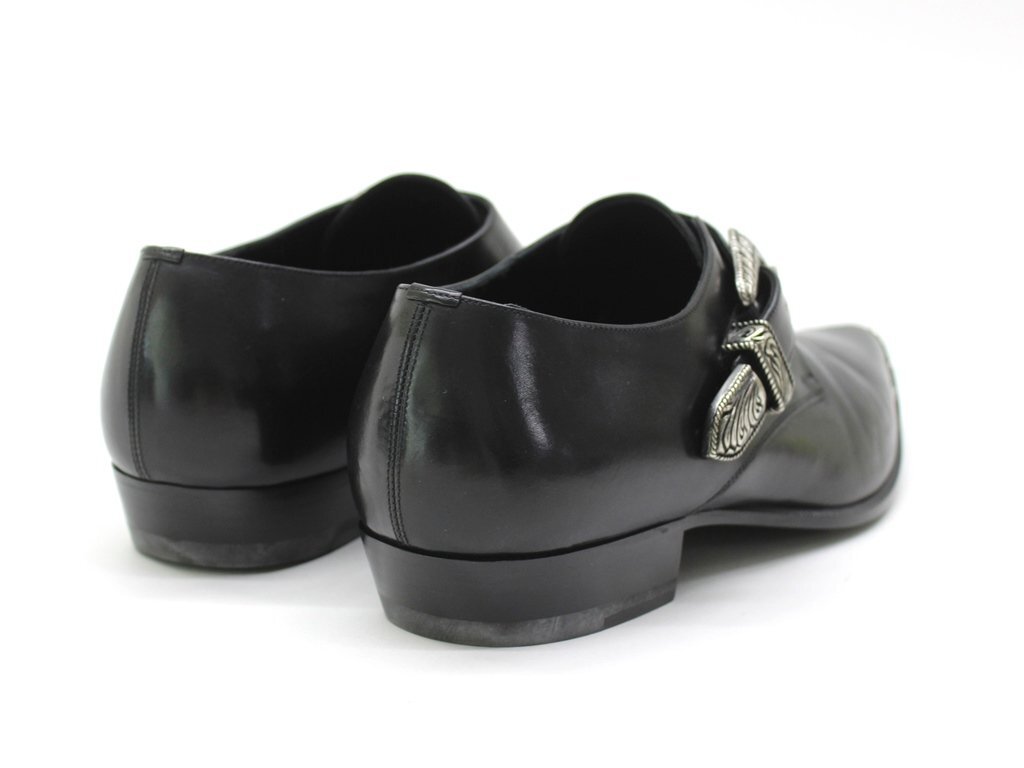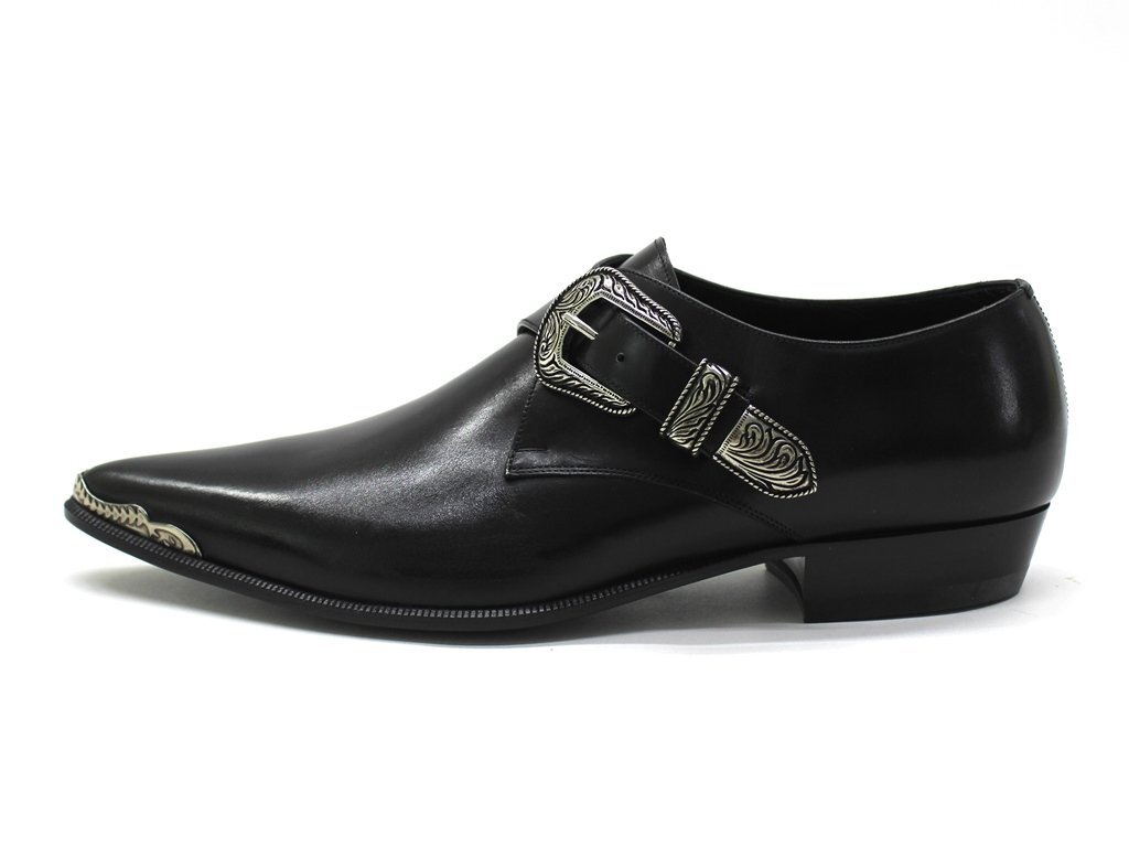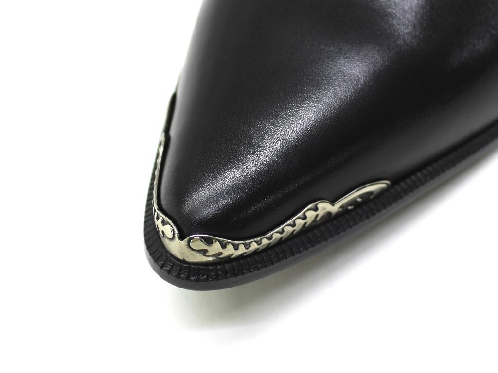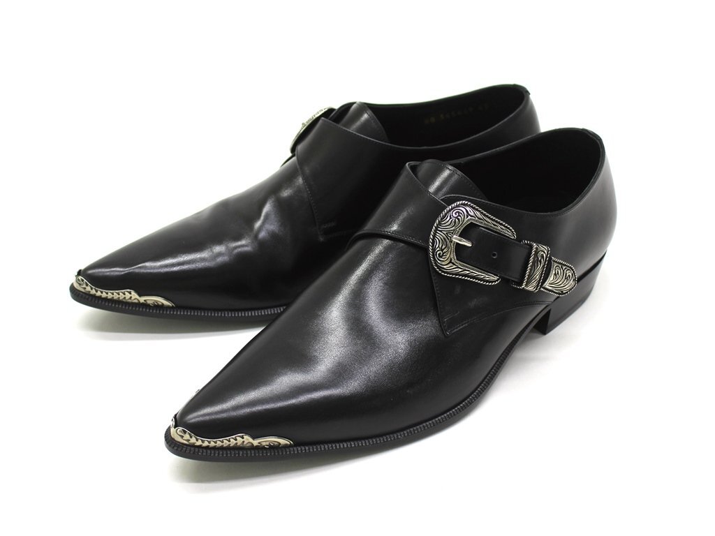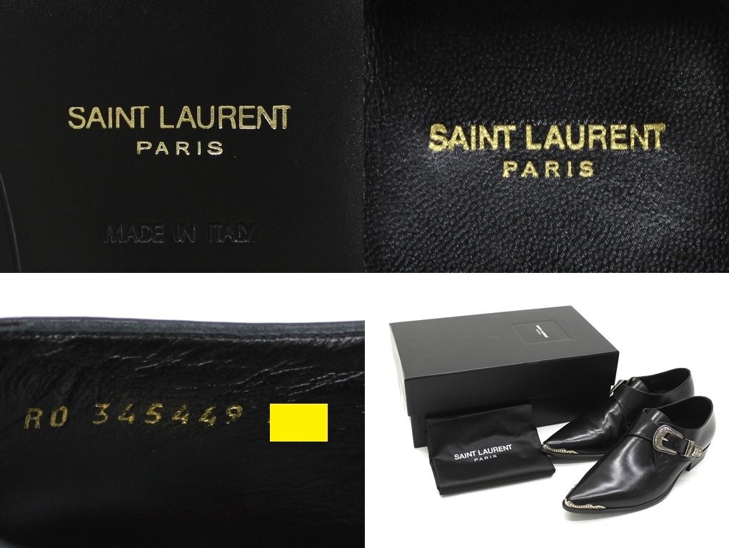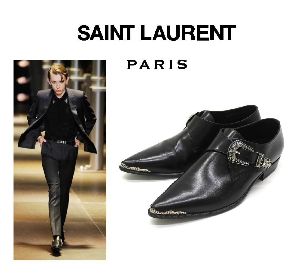 30万新品◆43=28cm◆【サンローラン】レザーウエスタンベルト ダッキーズショートアンクルブーツシューズ 黒
