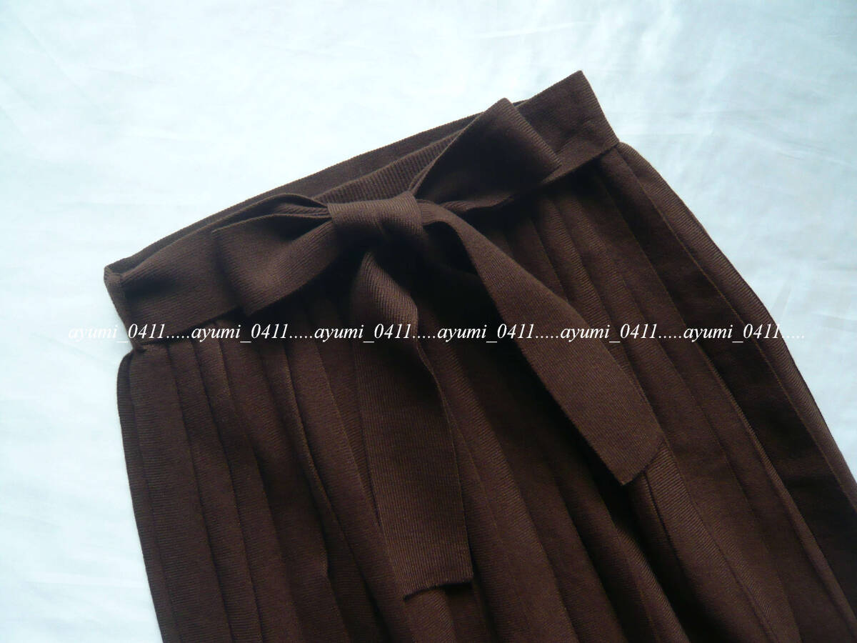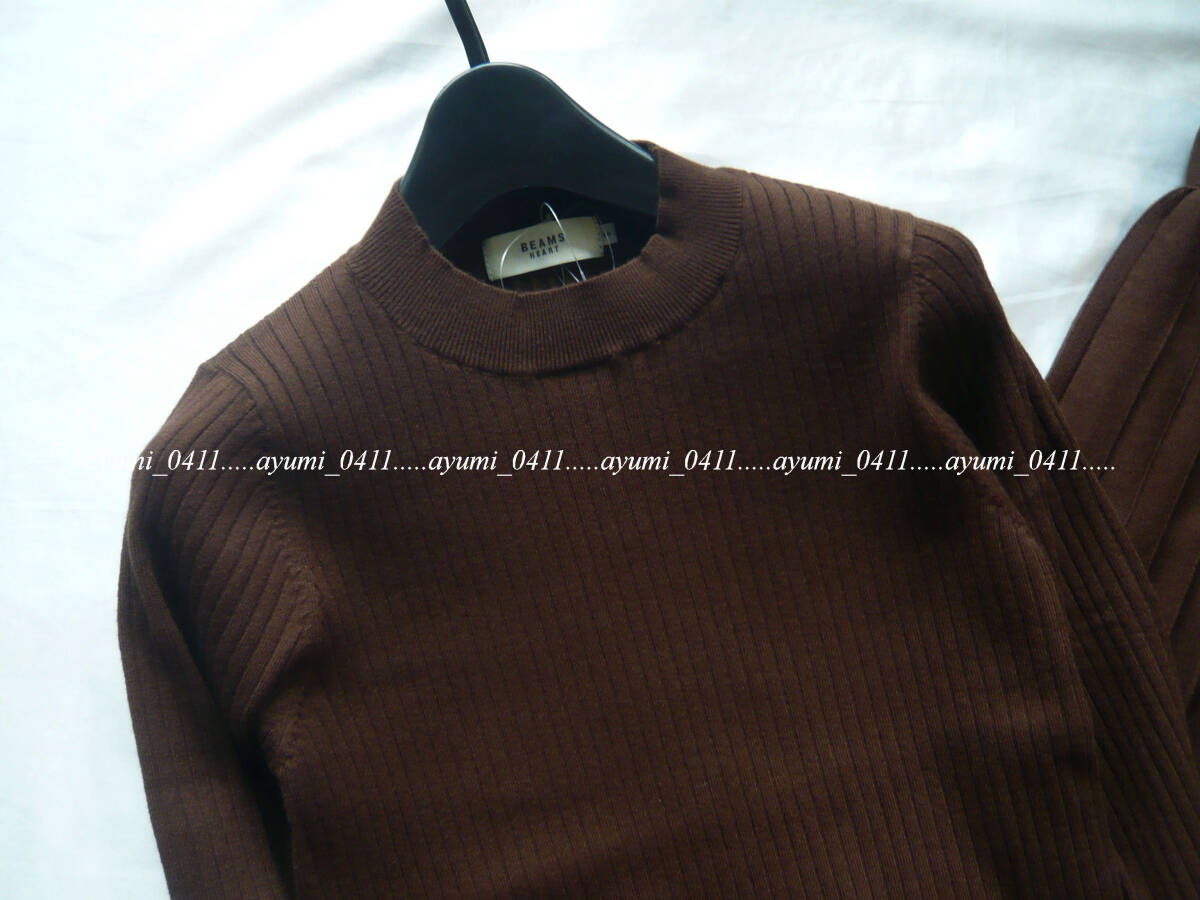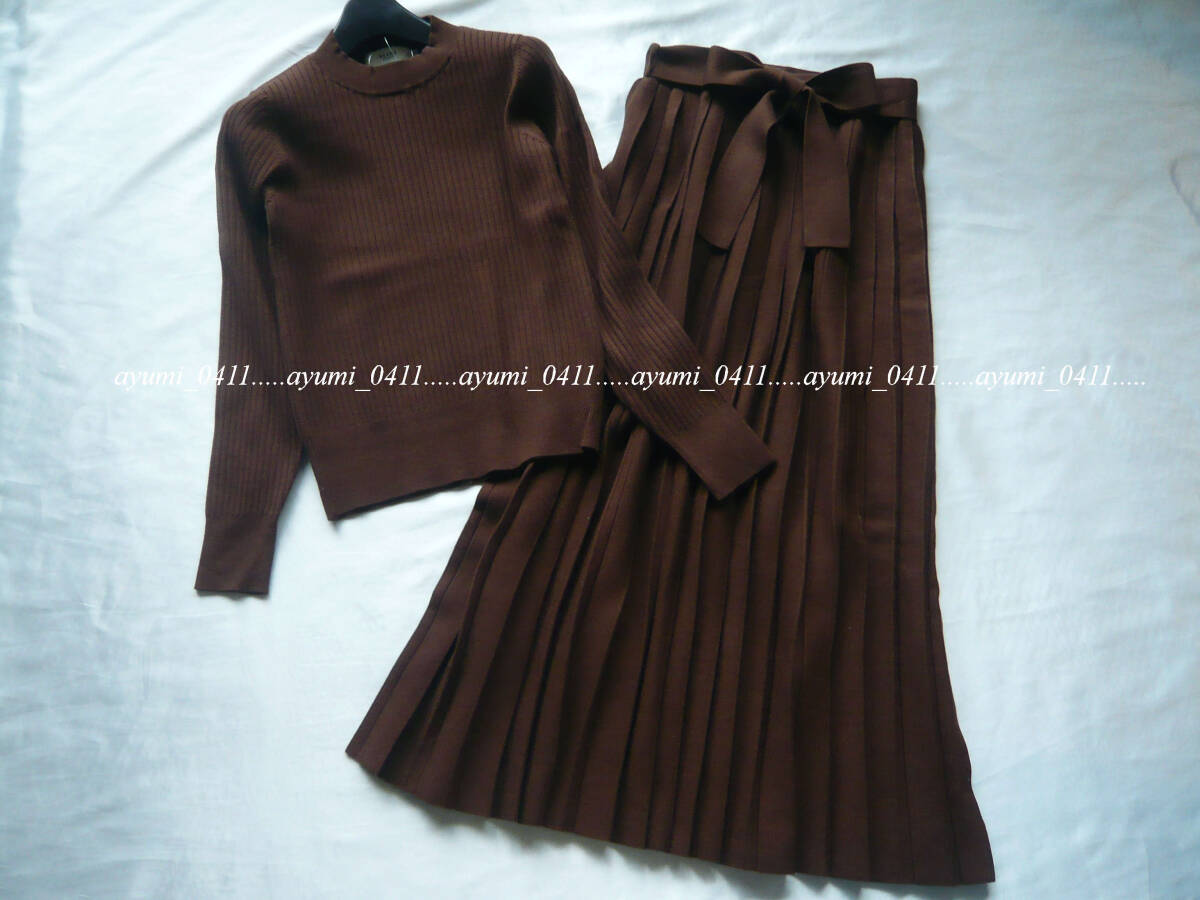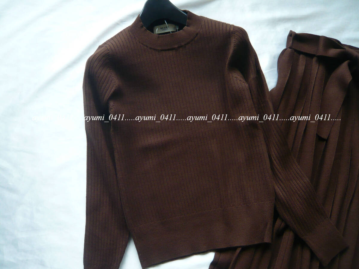 ★未使用★BEAMS HEART ビームスハート/ブラウン・リブニットプルオーバー×リボン付きプリーツスカート セットアップ/手洗い◎/Sサイズ