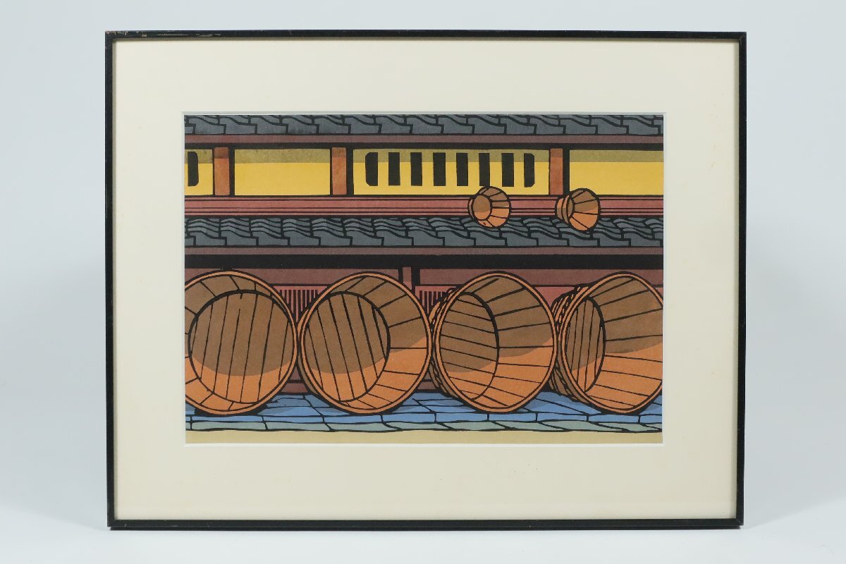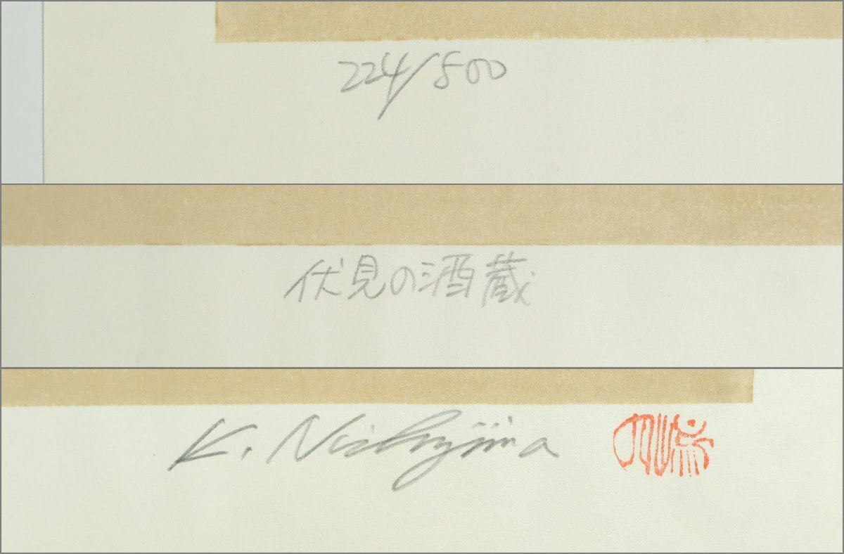 | ・西島勝之「伏見の酒蔵」224/500 木版画 額装品 /日本画 版画 100 | ||||||||||