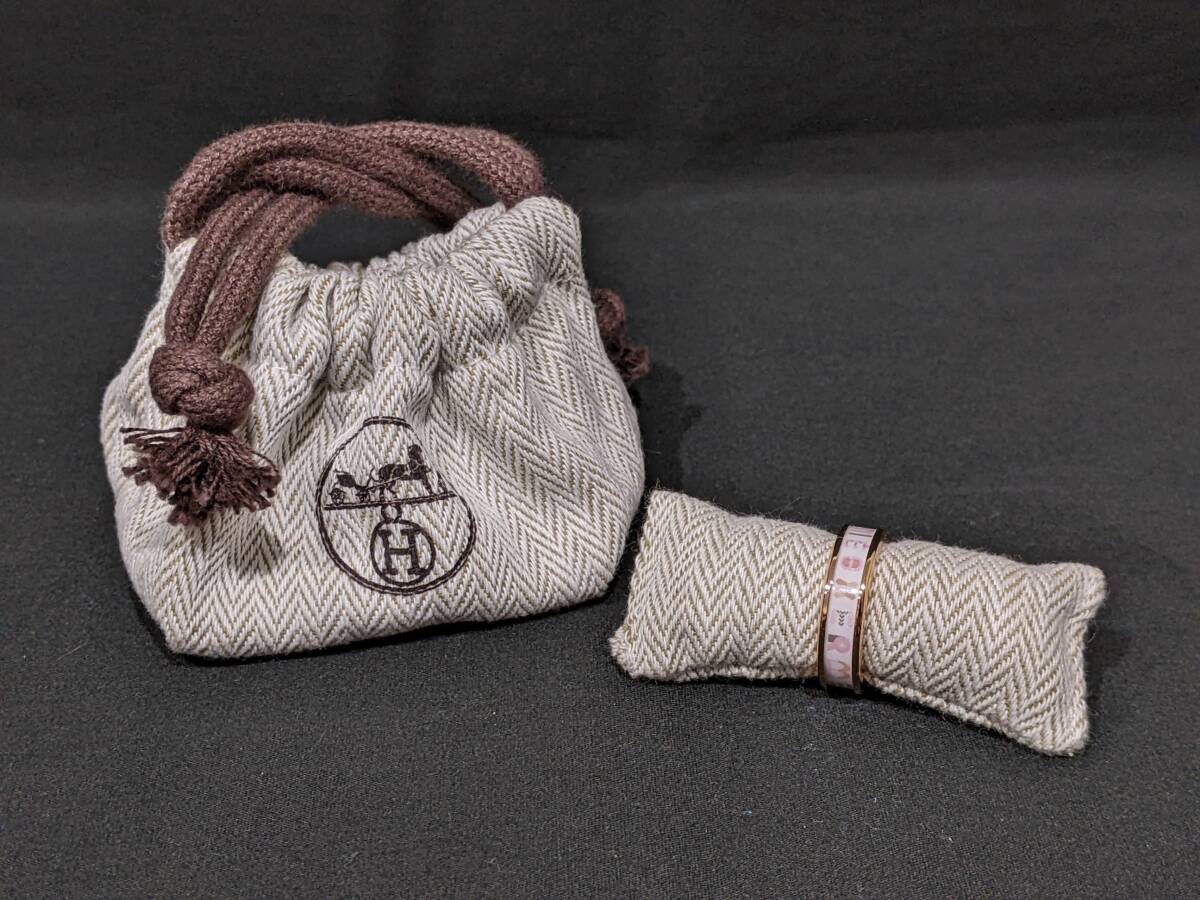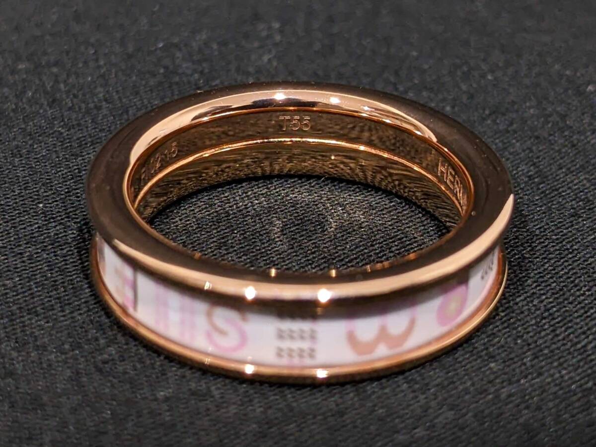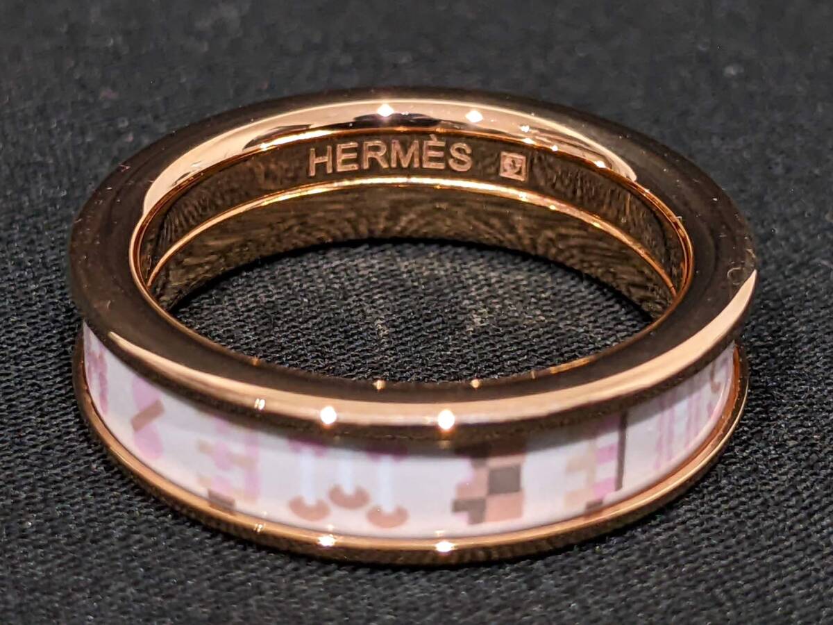 【68256】HERMES エルメス エマイユリング 指輪 約13.5号 ピンクゴールド 英字モチーフ ブランドアクセサリー 保存袋付