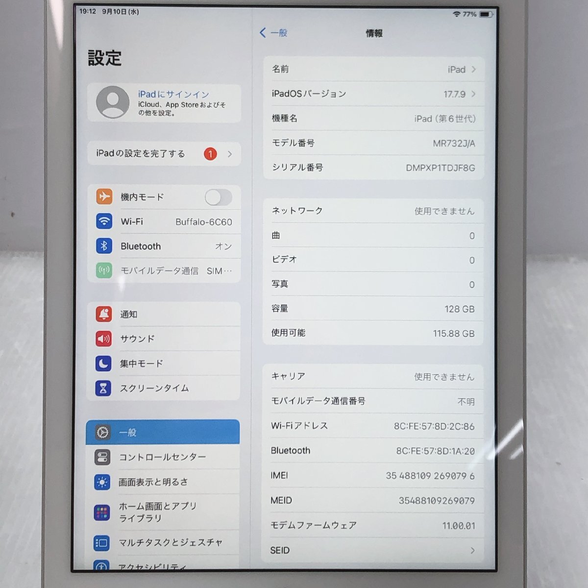 商品と付属品について | モデル番号:MR732J/A 容量:128GB カラー:シルバー iPadOSバージョン:17.7.9 ・アクティベーションロック解除 ・初期化済み ・キャリア:softbank ・IMEI :354881092690796 動作確認済みです。 |
