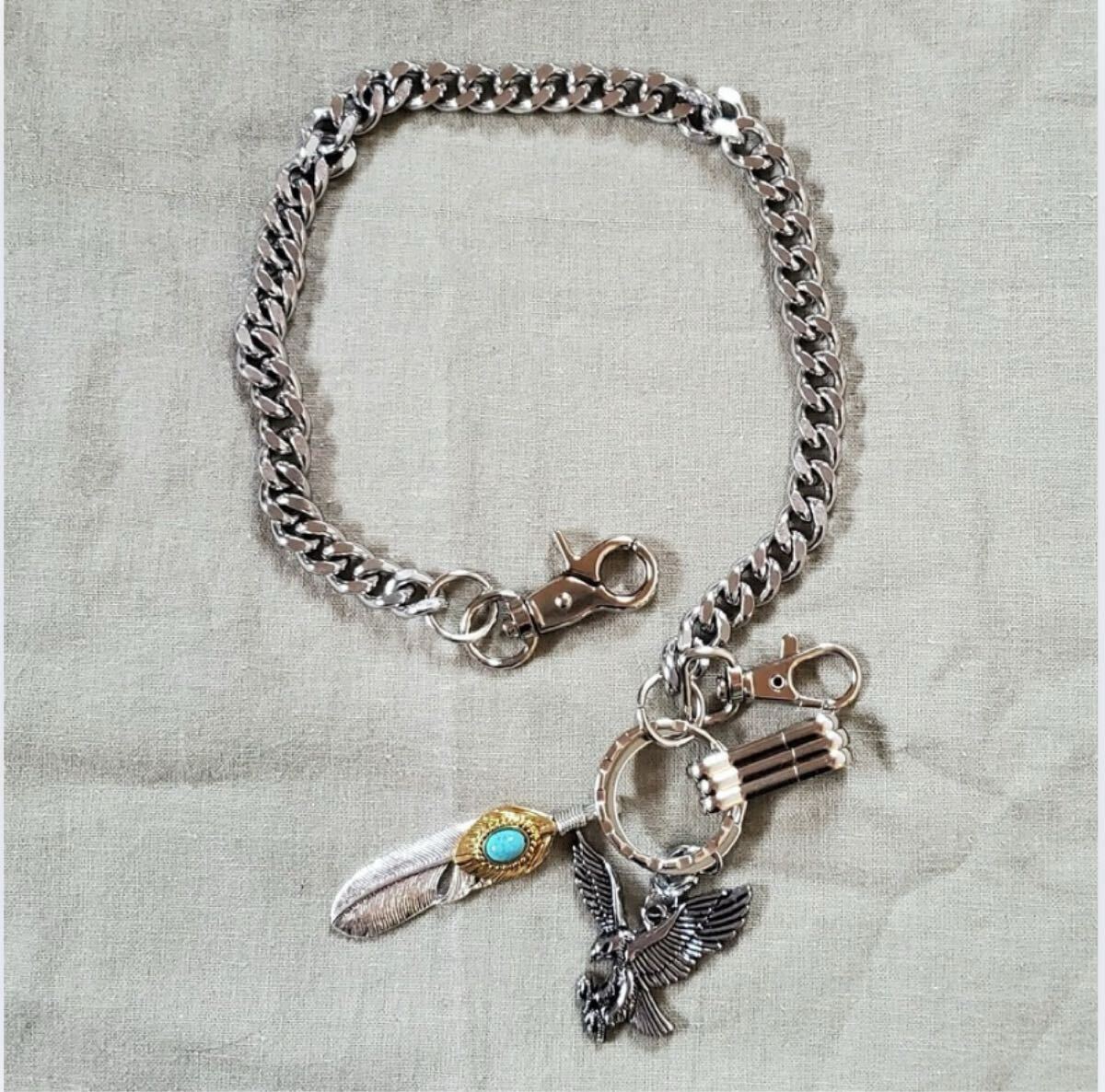 チェーン アメカジ ウォレットチェーン ファッション シルバー系 メンズ 10代 20代 30代 40代 コーディネート チャーム オシャレ プレゼント アクセント キーホルダー喜平チェーンフェザー羽モチーフ