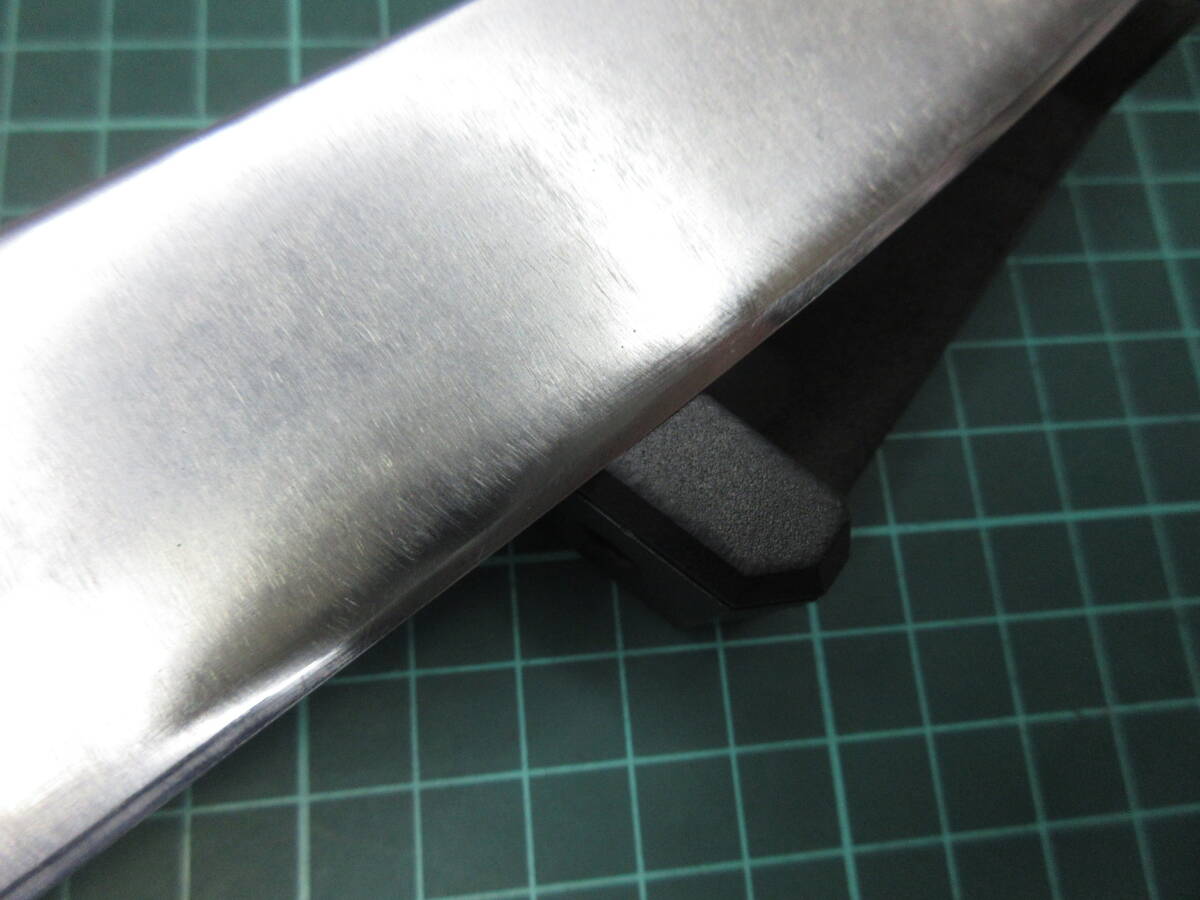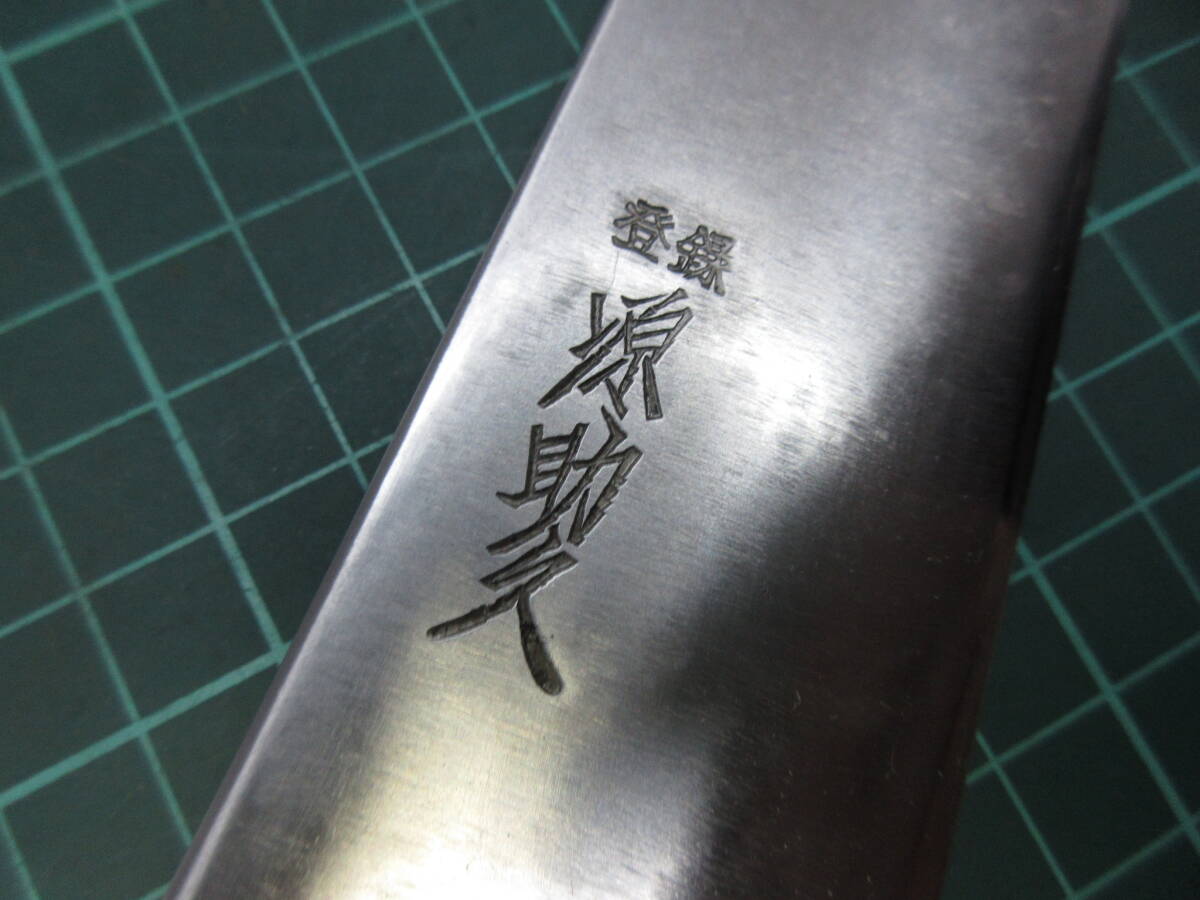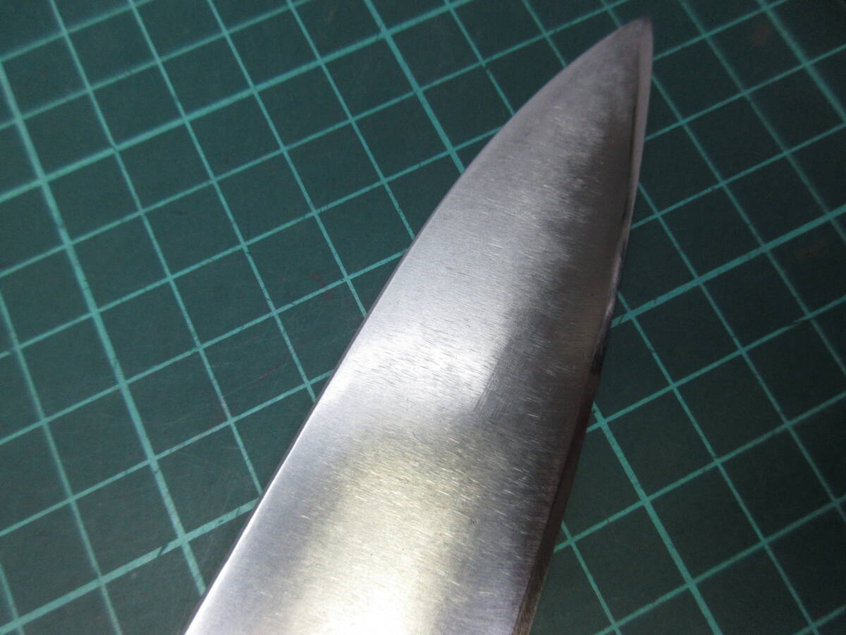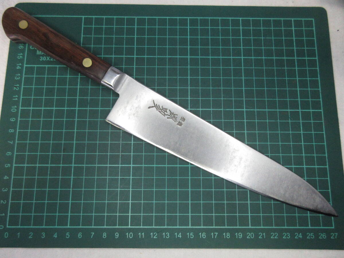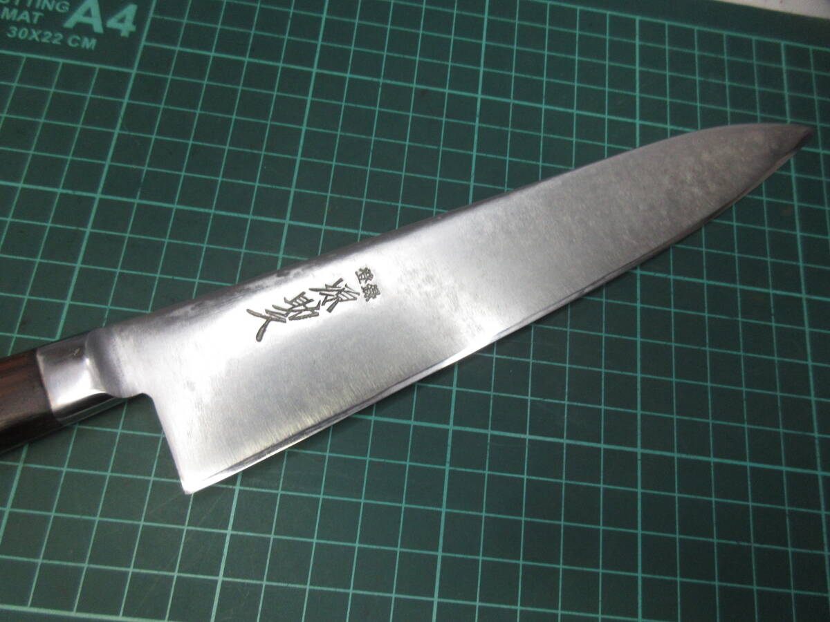 「受取連絡」が出来ない方の入札はお断りします。 こちらから評価を入れることはありません。 ■■■■■■■■■■■■■■■■■■■■■■■■■■■■■■■■■ 牛刀21cm 全鋼で直ぐ錆びます。 最後の写真は磨き前です。 歪みや反り、落としきれない錆があります。全体的に使用感があります。 包丁のみの出品です、付属品はありません。 ■■■■■■■■■■■■■■■■■■■■■■■■■■■■■■■■■ 発送はレターパックです。(補償はありませんのでご注意ください。) 送料を抑えたい方はライト(430円)を選択してください。(ただし厚さ制限のため簡易包装です、新聞紙で包む程度ですので輸送時の衝撃で包丁の歪みや破損のリスクがありますのでご理解ください。) プラス(600円)は衝撃対策で厚めの梱包をします。(複数同梱の場合は包装が簡易になります。) 刃渡り21cmまではレターパックで発送できると思いますが長い刃は着払いゆうパックになります。 小振りな包丁なら3本くらいまでライトで同梱できます。プラスなら5本までは入ると思いますが21cm以上の包丁が絡むと本数が限られます。 以下は定型文です。 洋包丁は両刃、和包丁は片刃を前提に出品しています。 (タイトルと個別情報に刃付けの記載が無ければ上記のとおりです) 他の出品物と同梱できます。(システム上、着払いとのまとめ依頼ができません。落札後に同梱希望のメッセージを 頂ければ対応します。) 送料と材質についての質問には返答しません。 包丁につきましては全てジャンクとし、ノークレームノーリターンでお願いします。 出品からお品物が届くまでに時間が掛かった場合、鋼などの材質ですと変色や錆などの変質がある場合がございますのでご了承ください。 錆の酷い包丁は再生研磨していますが、あくまで素人仕事です。電動工具を用いての仕上げです。 削る、磨くは出来ますが歪みの修正は出来ません。中古品ですので歪みがある前提で入札してください。 磨きにより錆に強くなるメリットがありますが切った食材が張り付くデメリットがあります。 切れ味が悪いや、思ったより汚いなどのクレームはご遠慮ください。 触れば怪我をするほどの最低限の刃付けはしてあります、開封時にご注意ください。 肉眼での検品ですので微細な傷や欠けを見落としている可能性もありますので写真を参照してください。 現状維持のために防錆に椿油を塗布していることがありますので写真に不自然な艶が写っている時があります、ご了承ください。 (鋼の洋包丁の場合は中子にも塗布するために柄にも油が散布しています。ご使用前に洗浄してください。) 中子やリベットの錆を落とす為に柄ごと研磨する場合がありますので、柄に研磨痕が残っている時があります。 柄の仕上げに軽く蝋引きしています。 片刃の場合、研ぎですが砥石傷が付くのを嫌ってベタ研ぎはせず、峰をわずかに浮かして仕上げています。(綺麗な裏押しの和包丁はベタ研ぎです) 10対0ではなく9対1位の感覚です、完璧な片刃をお求めの方は入札をご遠慮ください。 (和包丁は片刃前提です、洋包丁が片刃の場合にはタイトルと個別情報に片刃と記載してあります) 有効利用、再生利用できる方の入札をおまちしています。 写真で判断いただき、商品説明を理解出来る方のみ入札をお願いします。 クリーニングなどはせず、写真のままお送りします。 専門知識が乏しい為、質問に答えられない時があります。 ブランド品の真偽については不明とさせて頂きます。 素人による中古出品です、すり替え防止の為にもノークレームノーリターンでお願いします。 入金を確認しました時点でお取り置き終了と判断し発送準備にはいります。 同梱発送、お取り置きを希望の方は入金前に連絡頂くと助かります。 落札後、48時間以内の初回連絡、五日以内の入金が確認出来ません場合は落札者様都合のキャンセルとさせて頂きます。 その場合落札者様に非常に悪い評価とブラックリストへの登録を同時に行いますのでご了承ください。 (以後こちらのオークションに入札が出来なくなります) #お取引に不安を感じる評価の方は削除させて頂く事があります。 #総合評価が高くても直近に悪い評価がある方も削除致します。 #いたずら入札を防ぐ為、1万円以上の入札額時の場合は新規の方の入札をお断りします。 #(どうしても入札したい時は質問欄より入札意思をお伝えください。) *評価を入れて頂くと反射的にお返しする形を取っています、不要の方は評価を入れないで下さい。 *こちらから評価をお付けすることはありません、不要の方は「受取連絡」で終了して下さい。 自己紹介欄もあわせてお読みください。 | ||